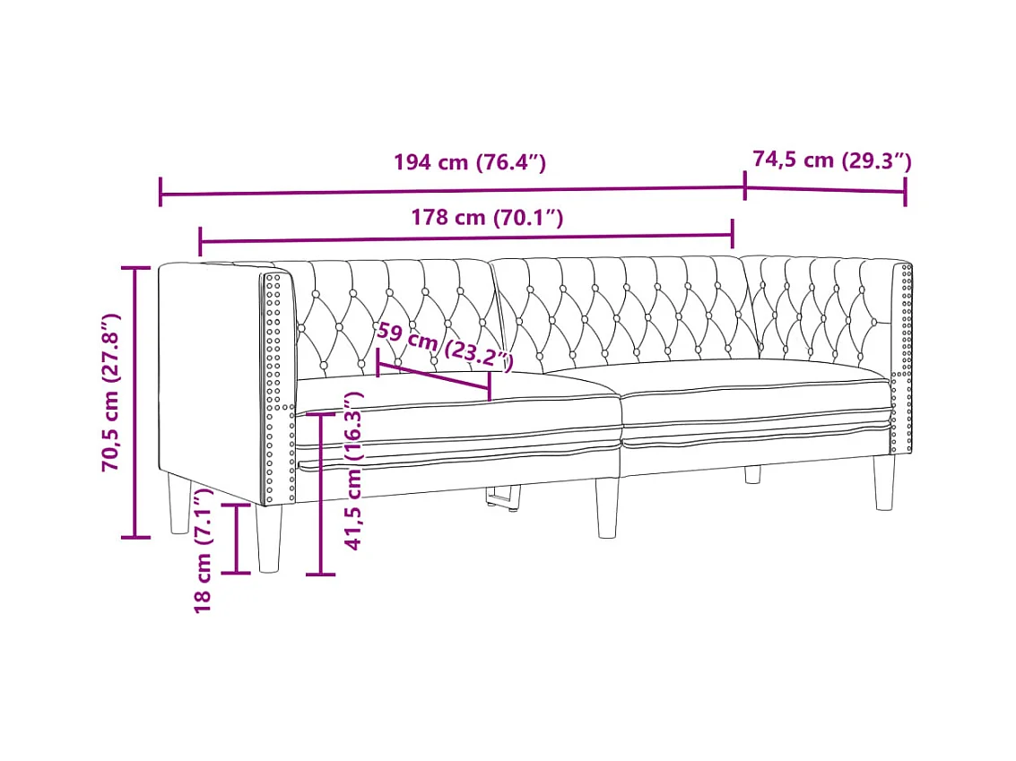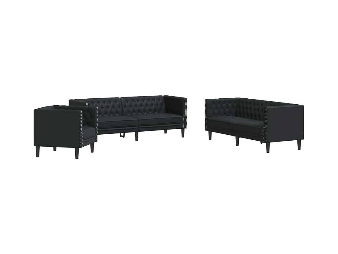 Set di divani Chesterfield 3 pezzi in similpelle nera