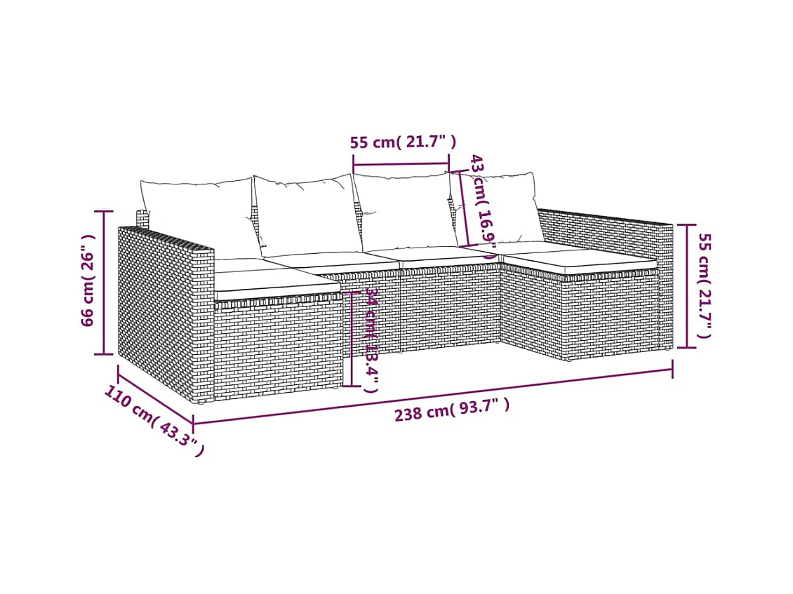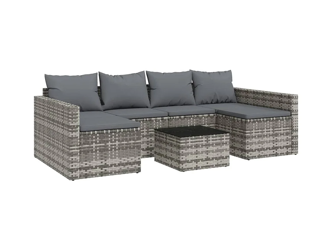 Set Divani da Giardino 7 pz con Cuscini Grigio in Polyrattan