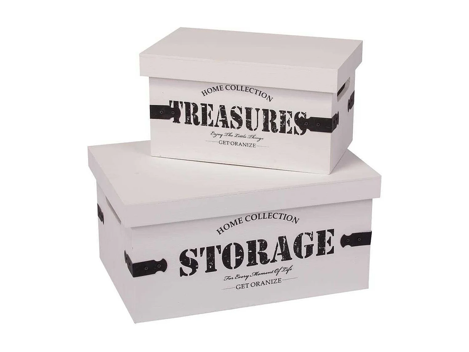 Set di due scatole in legno laccato bianco