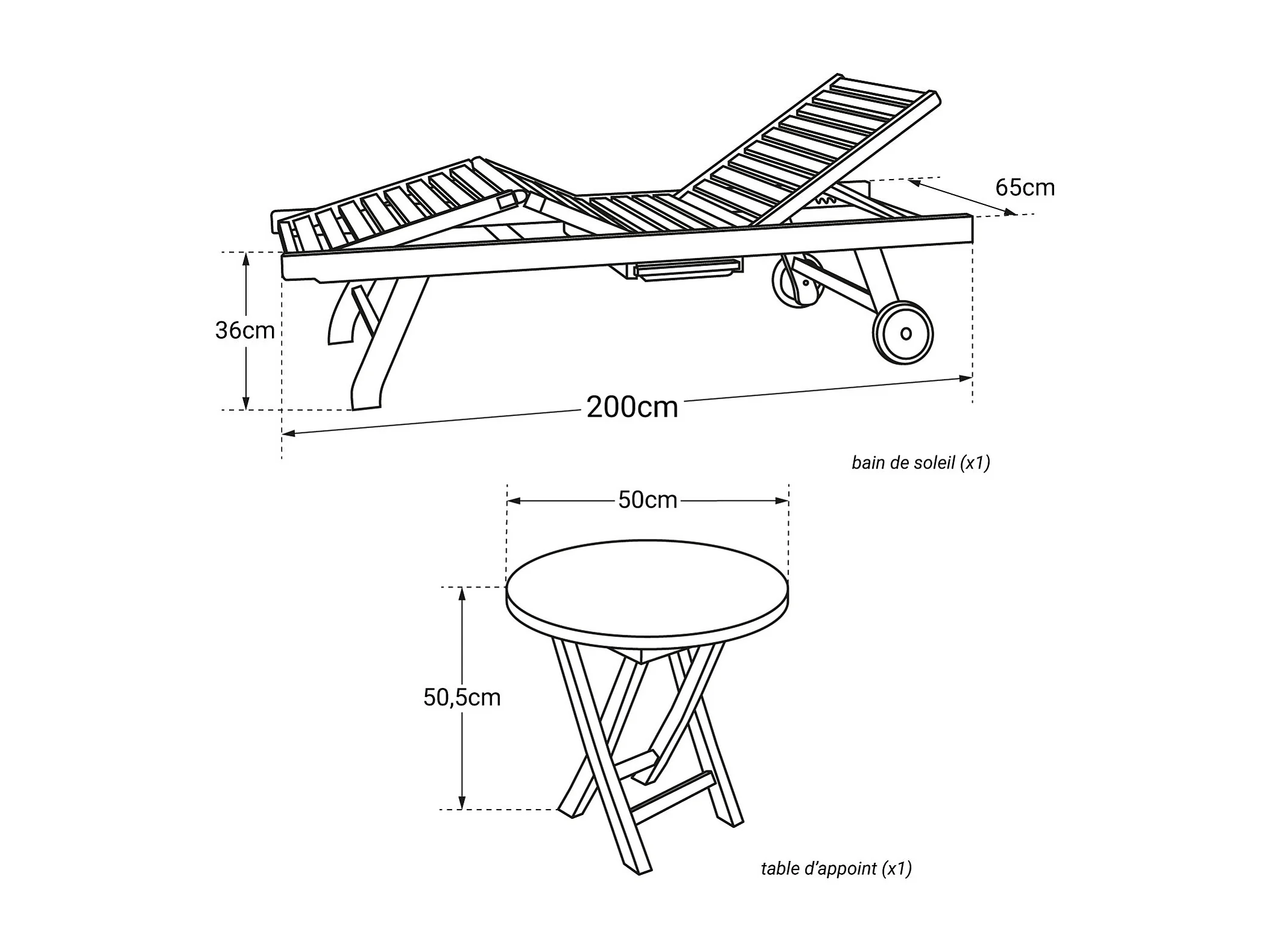 Set di lettini e tavolini pieghevoli in teak LOMBOK