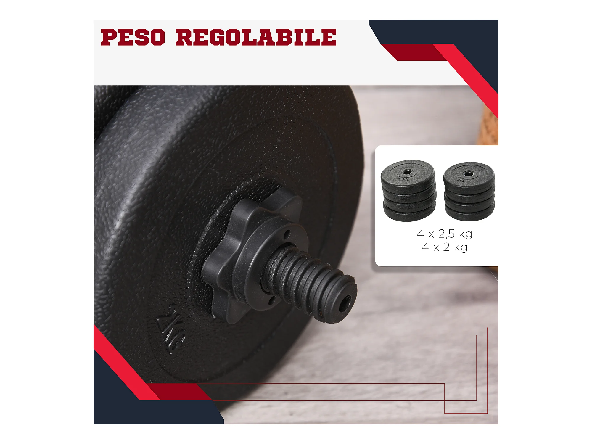 Set di manubri da 20kg totale per allenamento a casa in acciaio e pe