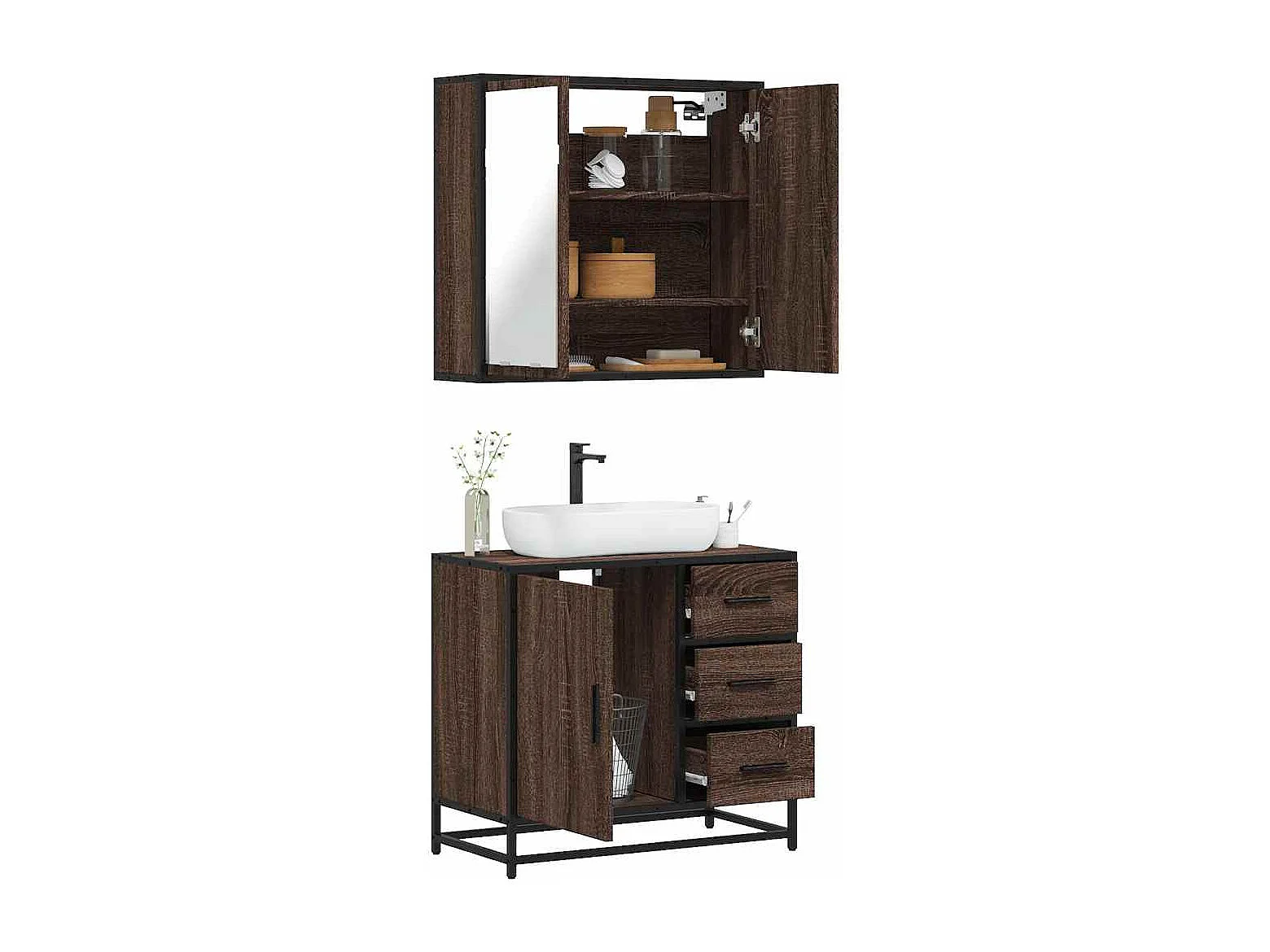 Set di mobili da bagno 2 pezzi Rovere marrone