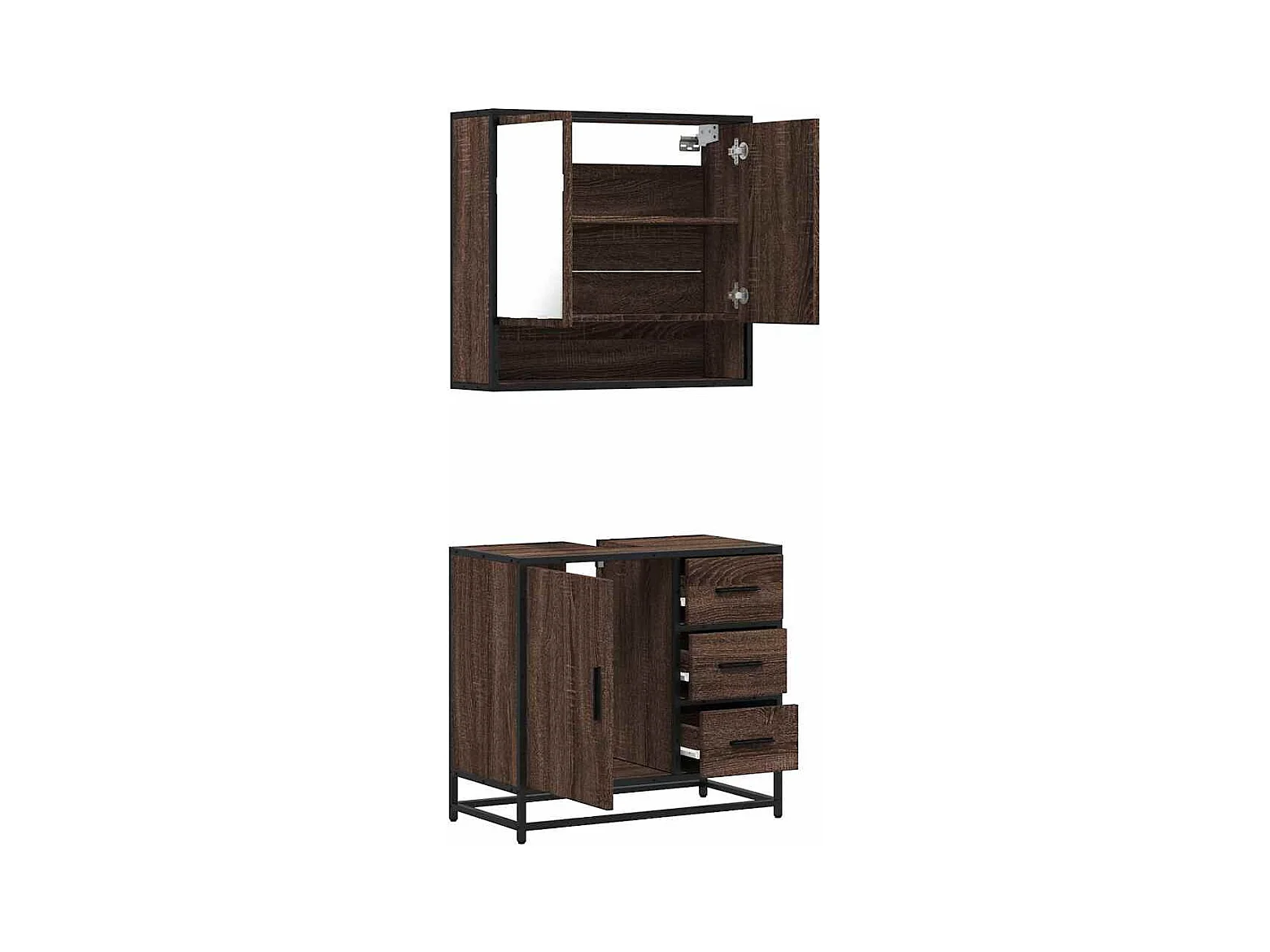 Set di mobili da bagno 2 pezzi Rovere marrone