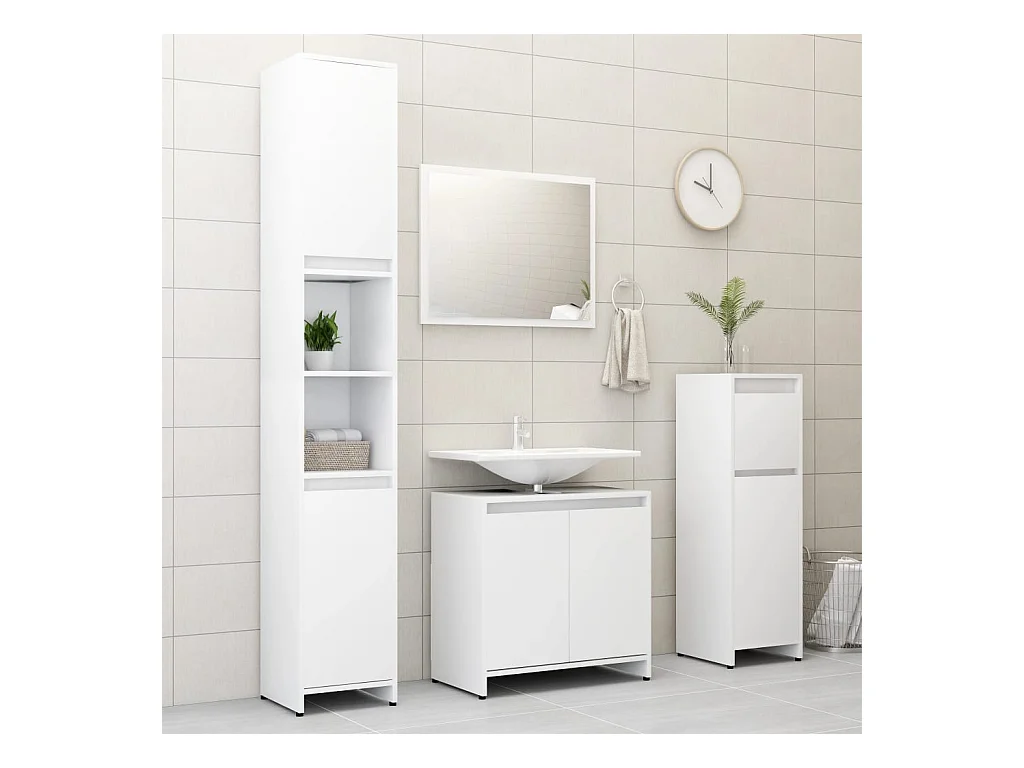 Set di mobili da bagno in legno ingegnerizzato bianco