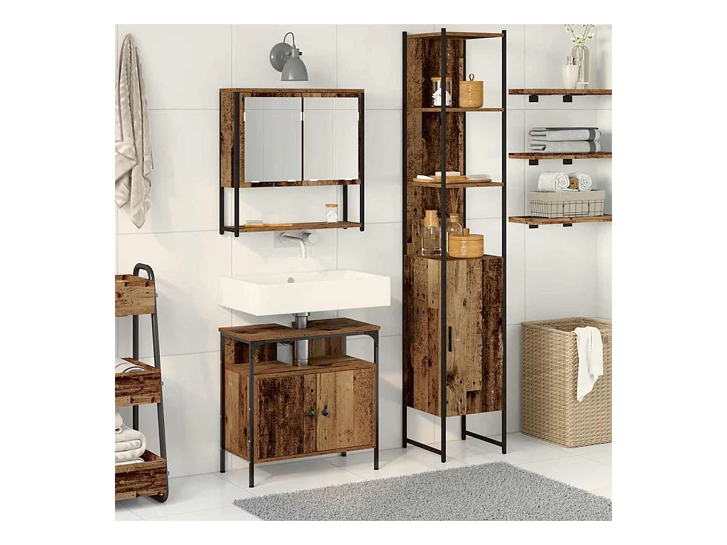 Set di mobili da bagno 3 pezzi in rovere lavorato a mano