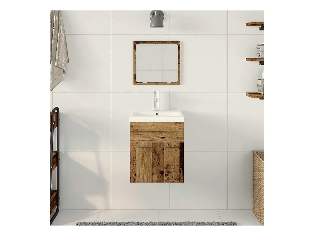 Set di mobili da bagno a parete 4 pezzi in legno anticato