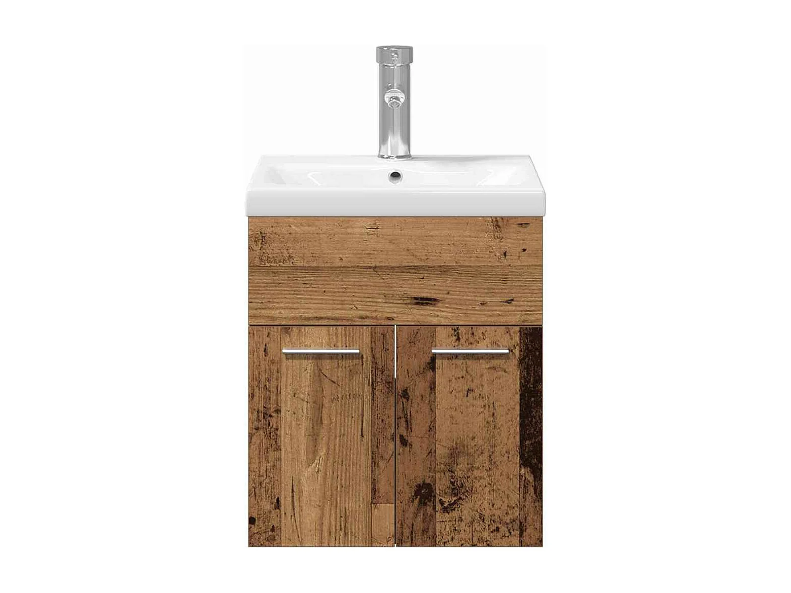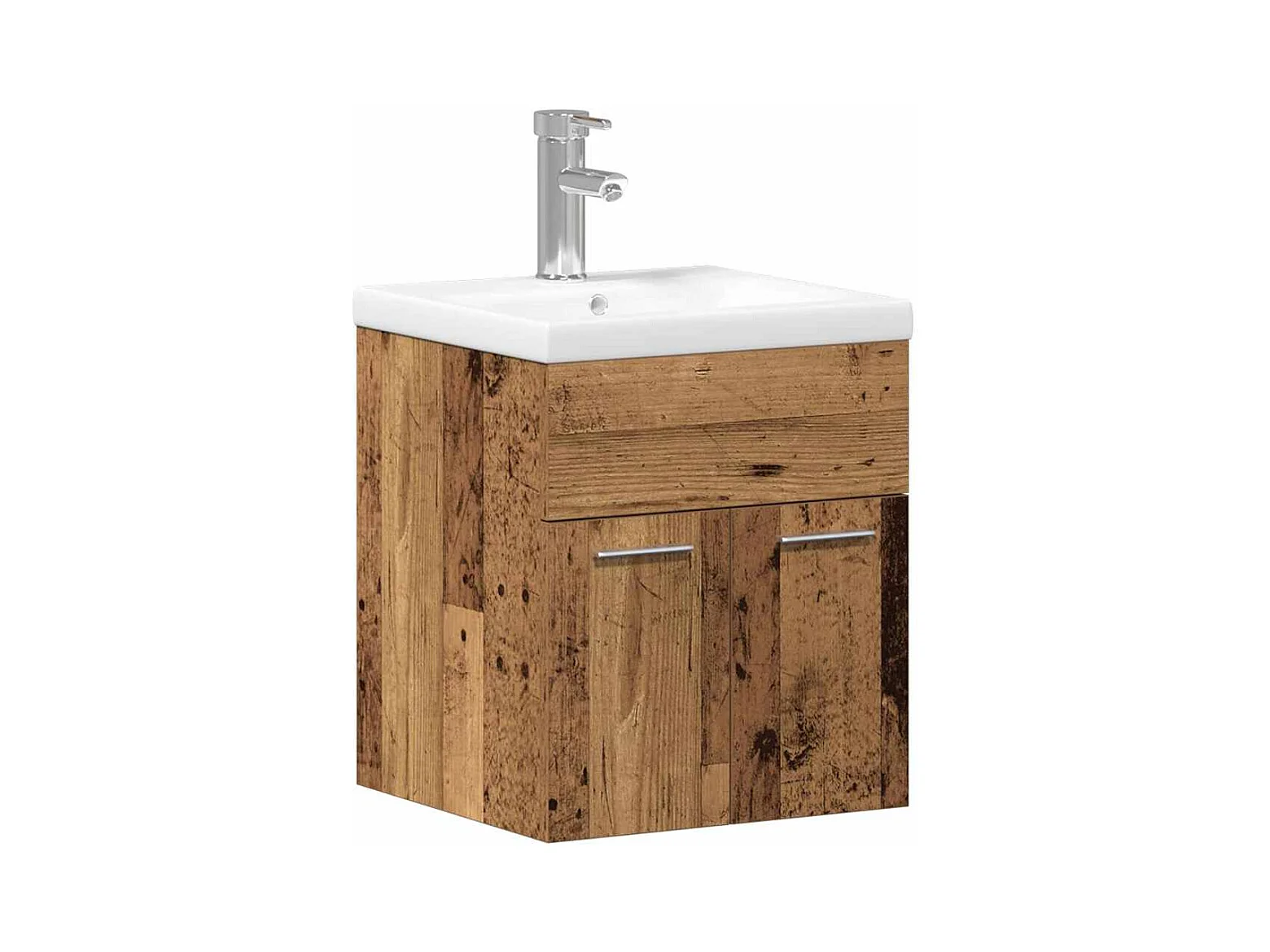 Mobile lavabo con vasca integrata e rubinetto in legno vecchio