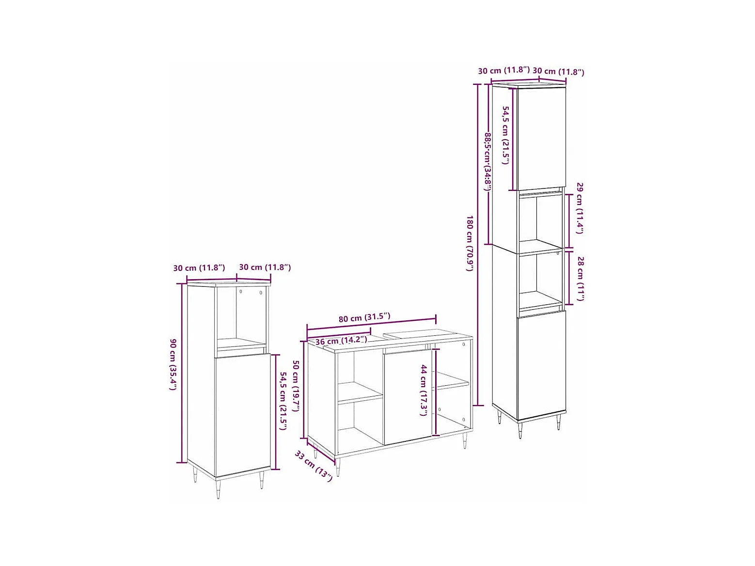 Set di mobili da bagno con contenitore 3 pezzi nero