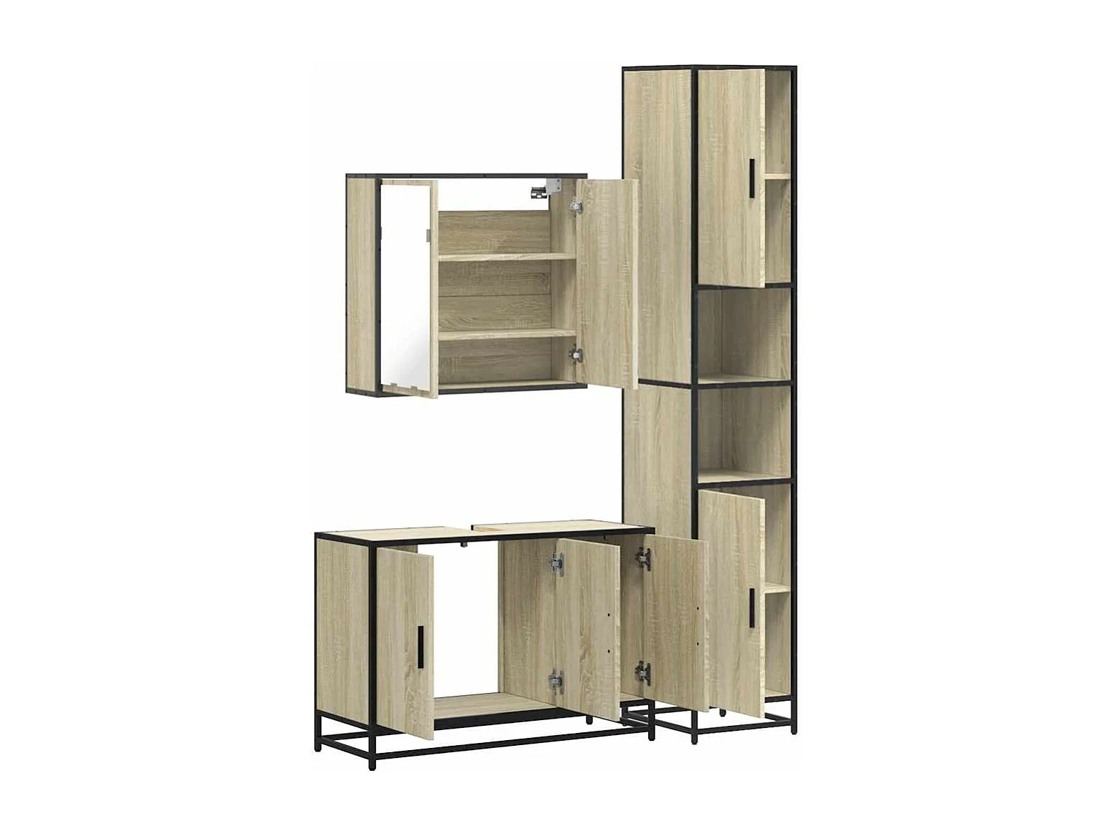 Set di mobili da bagno 3 pezzi in rovere Sonoma