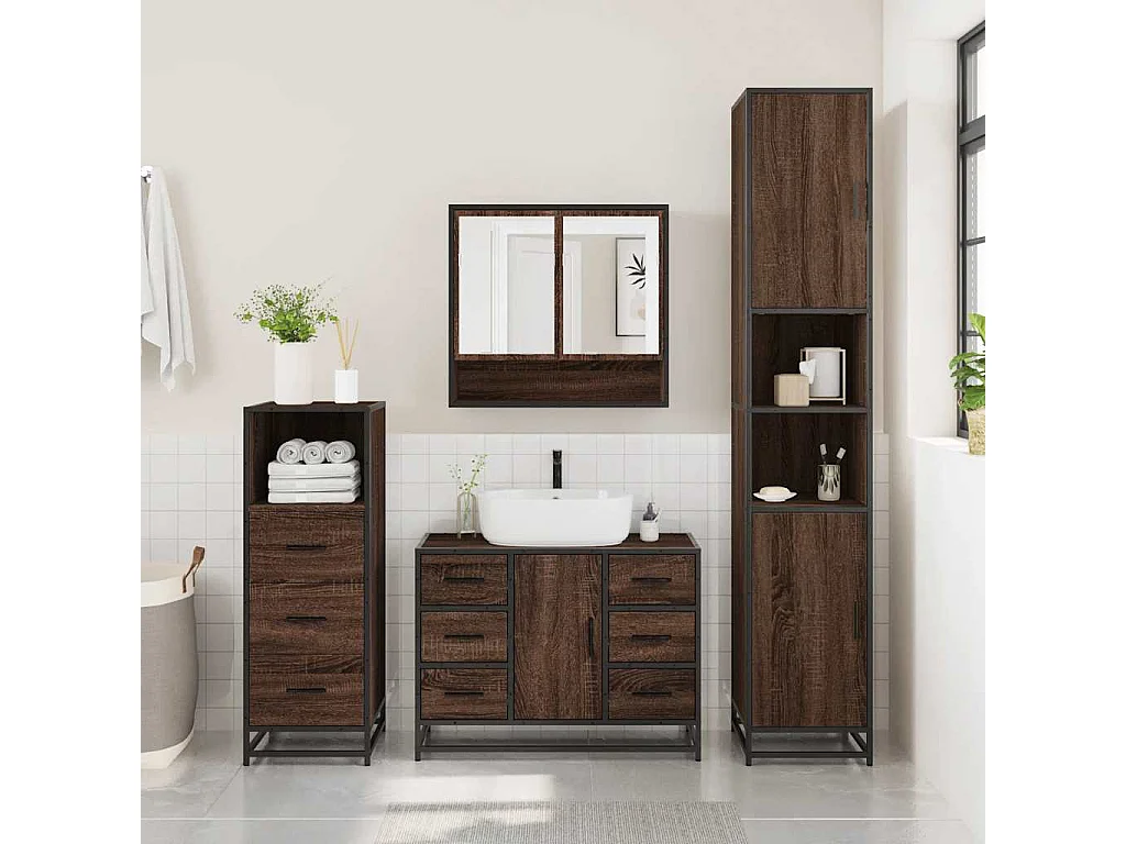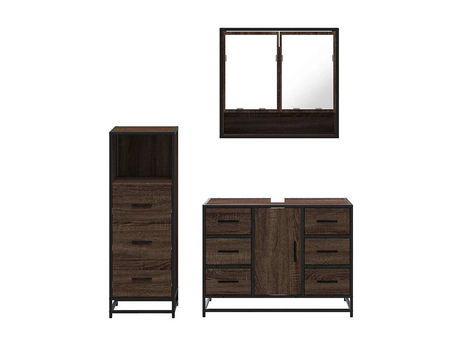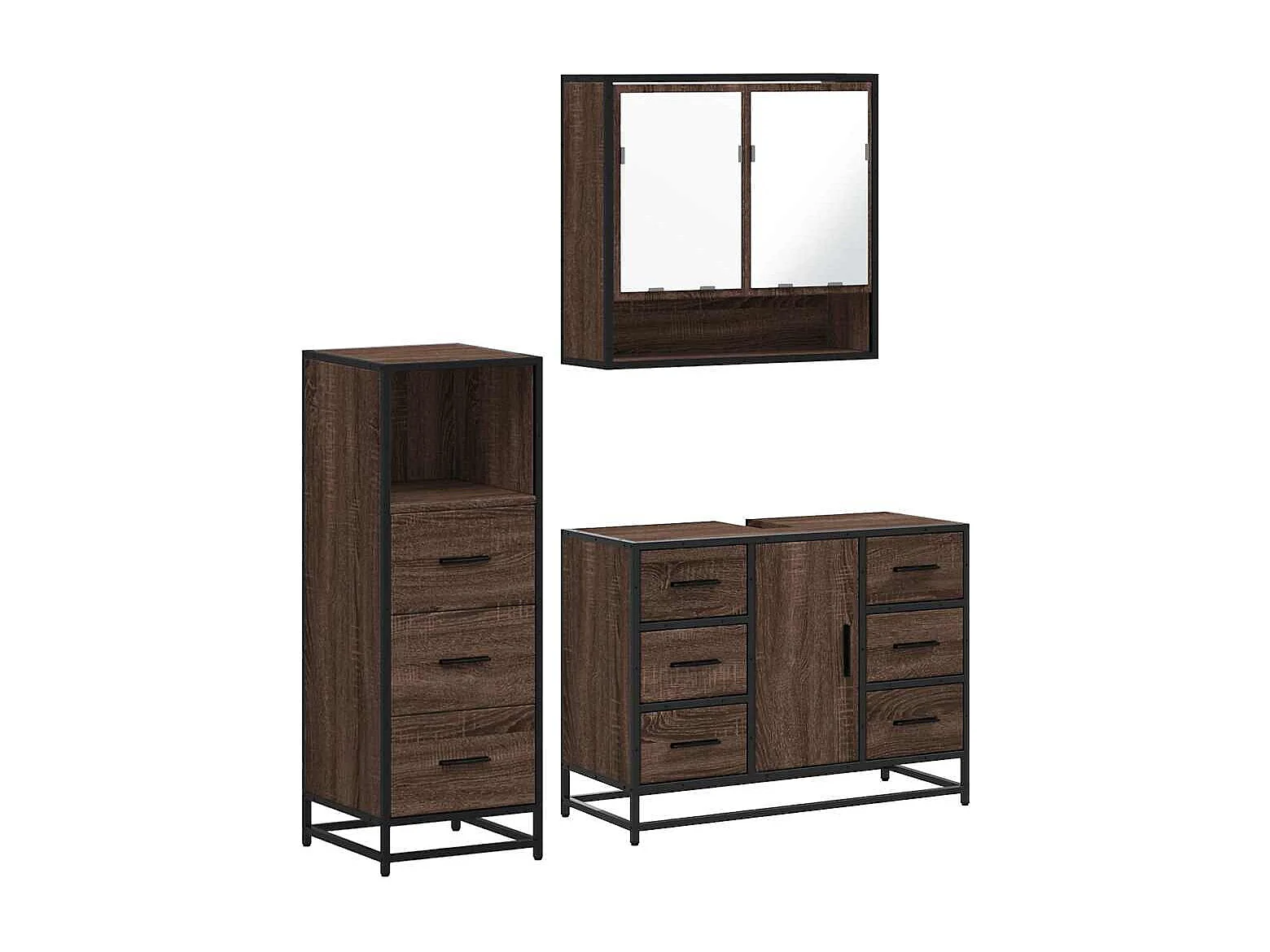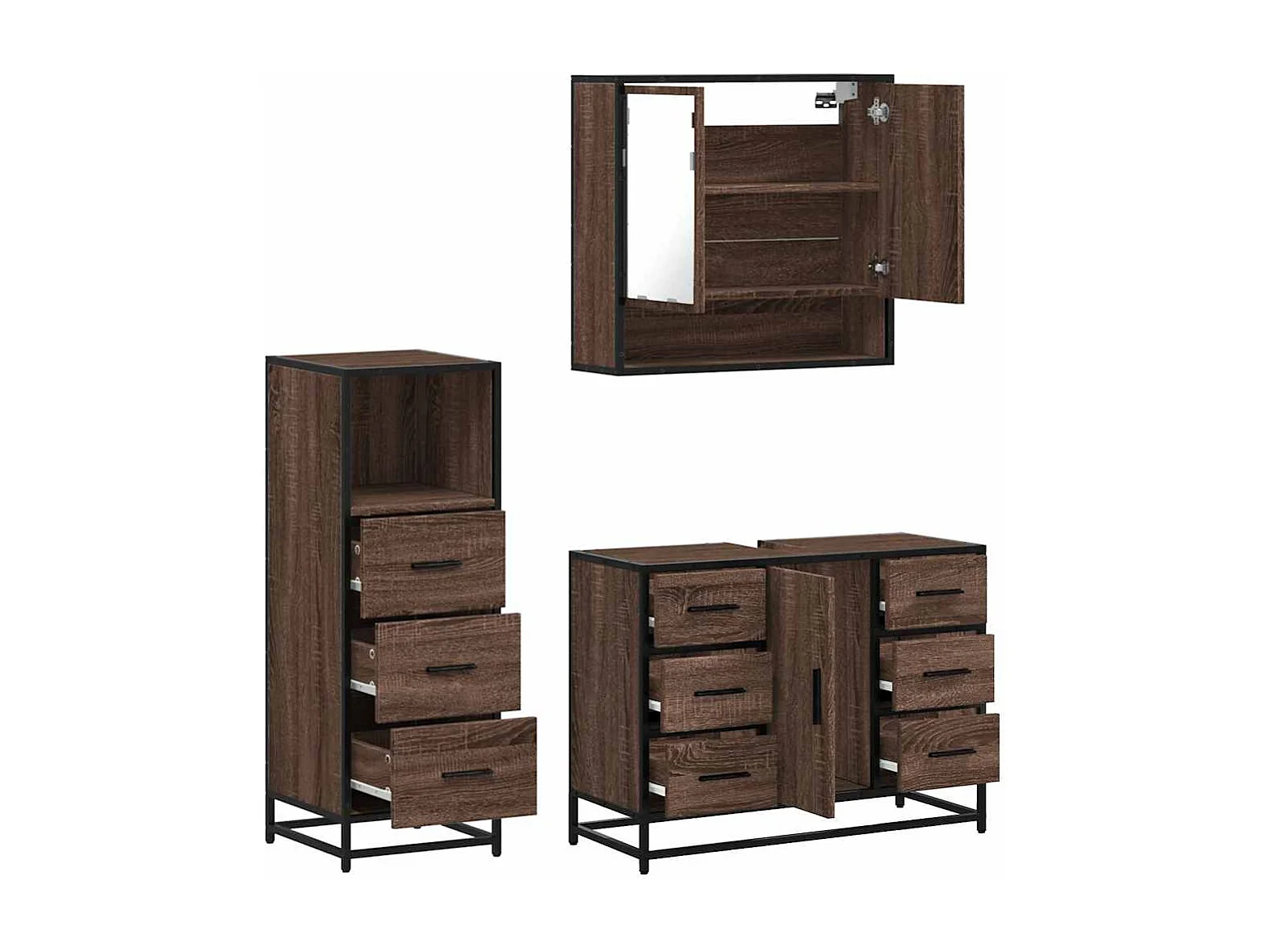 Set di mobili da bagno 3 pezzi Rovere marrone