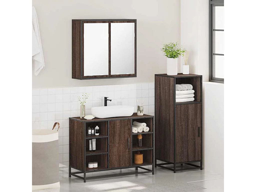 Set di mobili da bagno 3 pezzi Rovere marrone