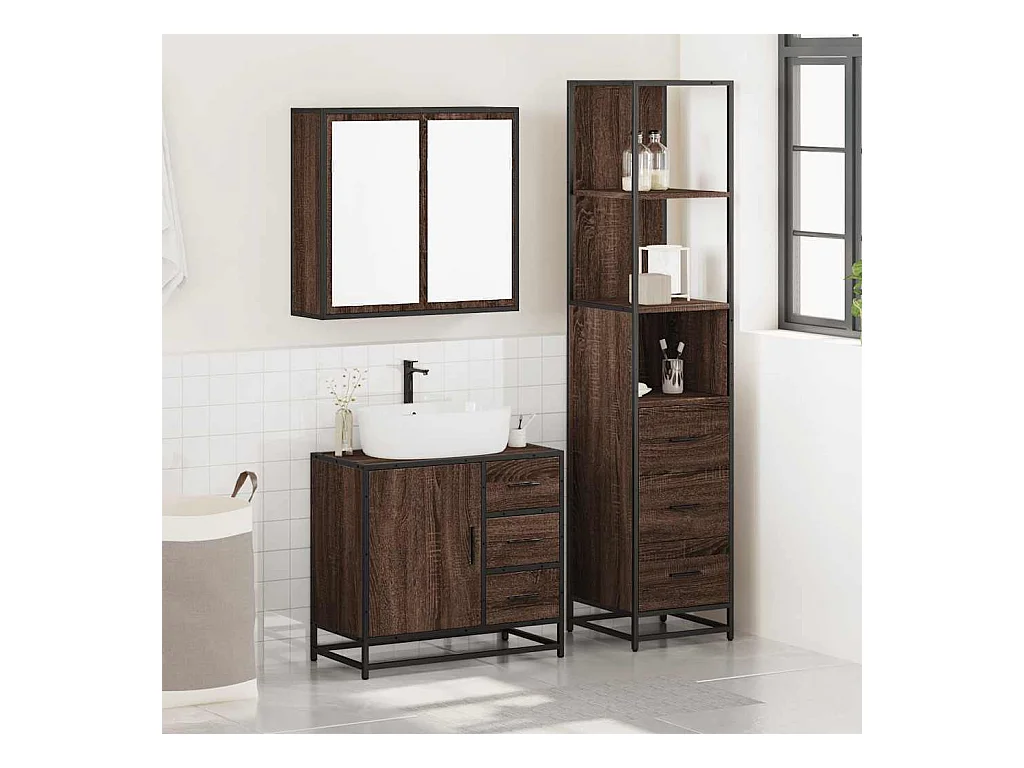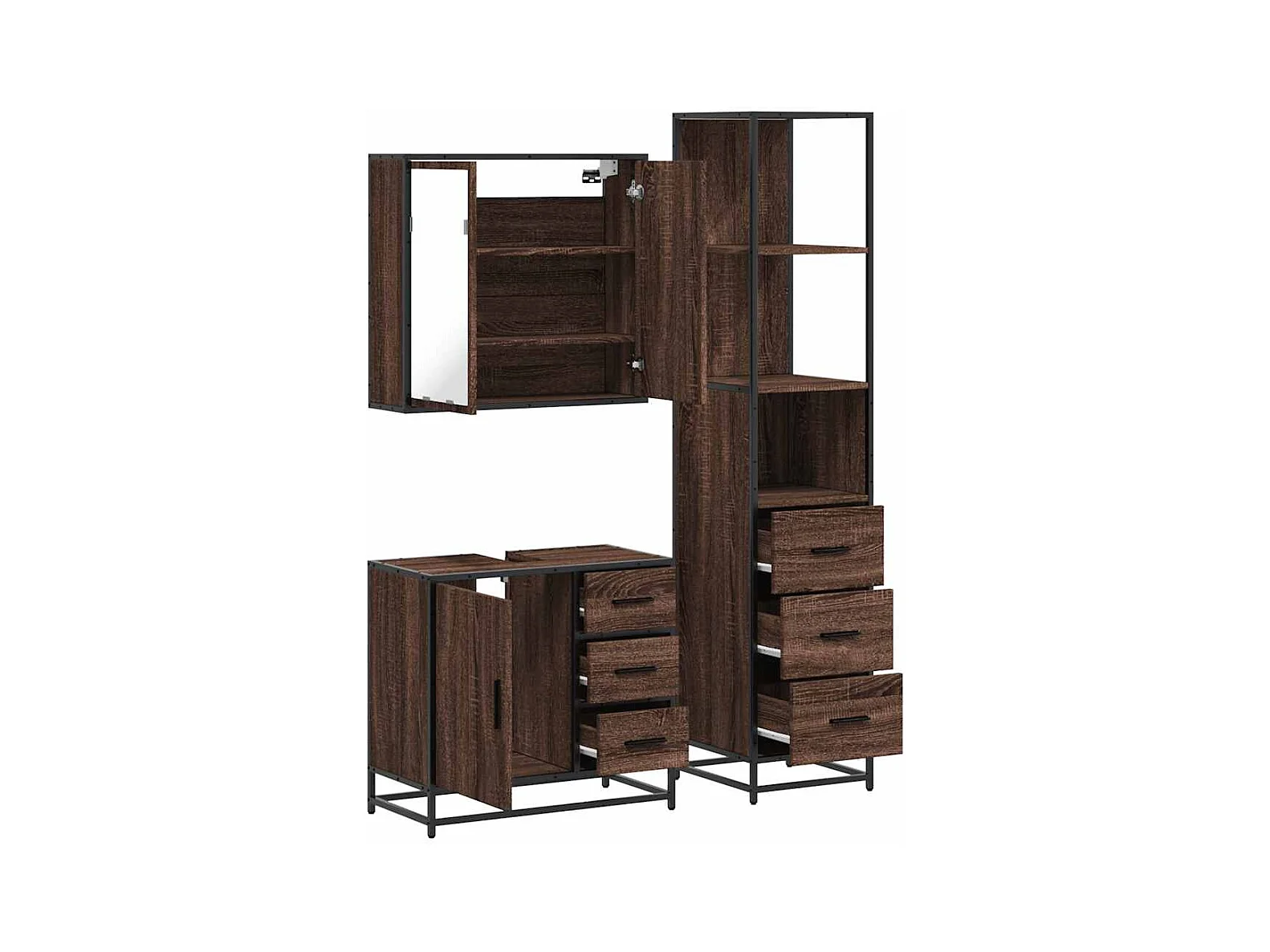 Set di mobili da bagno 3 pezzi Rovere marrone