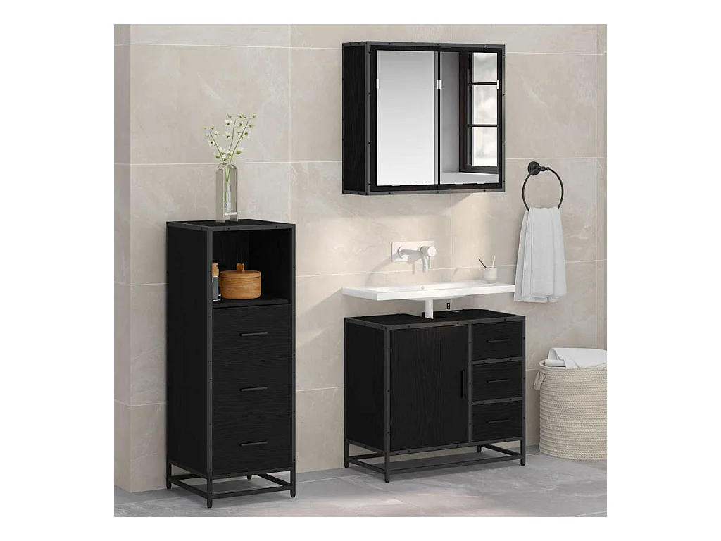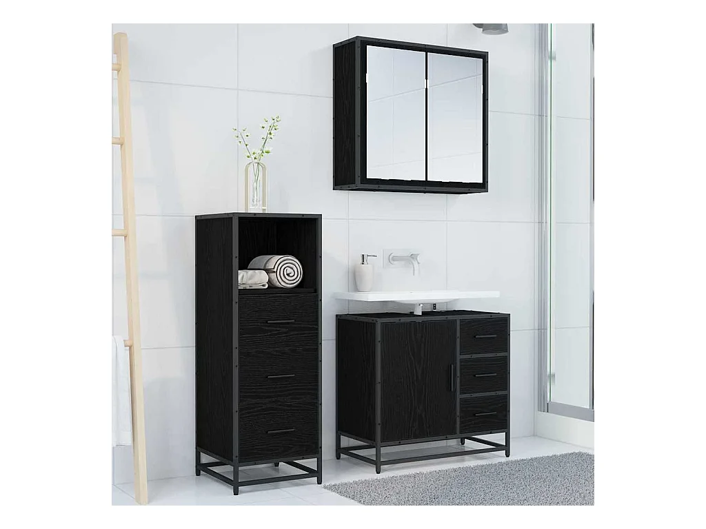 Set di mobili da bagno in legno ingegnerizzato nero, 2 pezzi