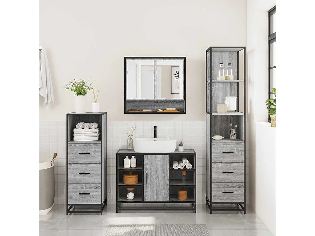 Set di mobili da bagno 4 pezzi grigio Sonoma