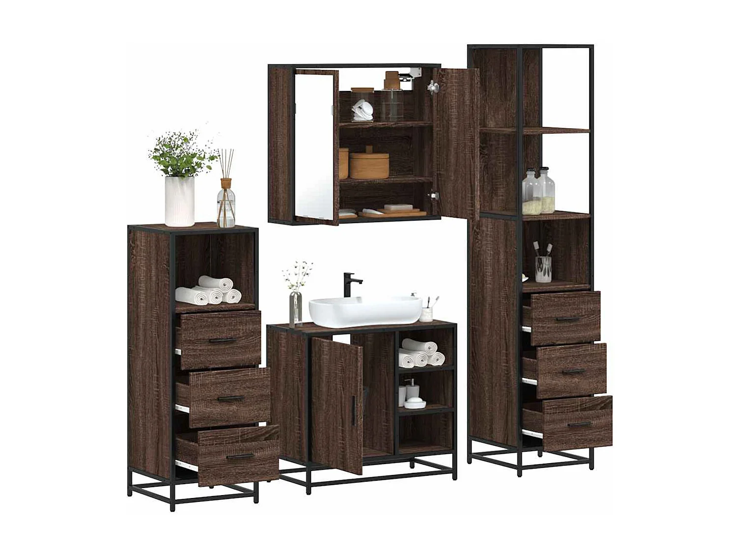 Set di mobili da bagno 2 pezzi Rovere marrone