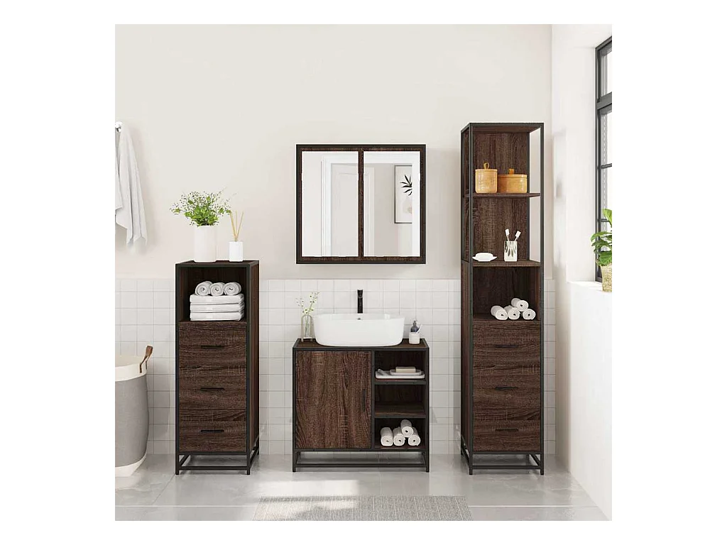 Set di mobili da bagno 3 pezzi Rovere marrone