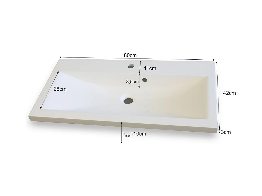 Set di mobili da bagno bianchi, collezione RAVEN. 2 colonne, specchio, mobiletto sotto lavabo, lavabo 80cm, sifone e led.