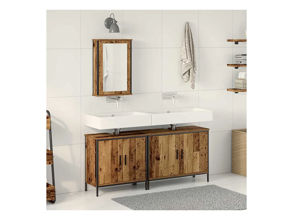 Set di mobili da bagno in rovere affumicato da 4 pezzi