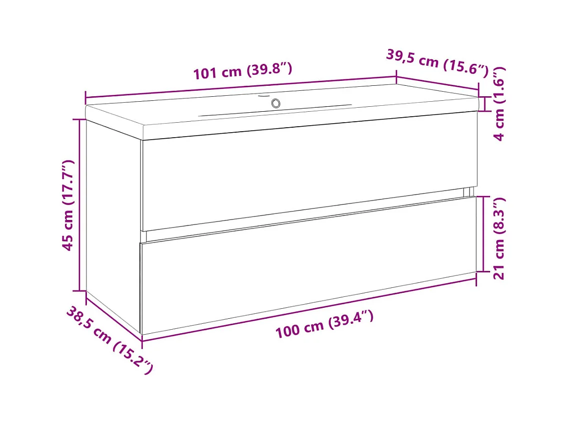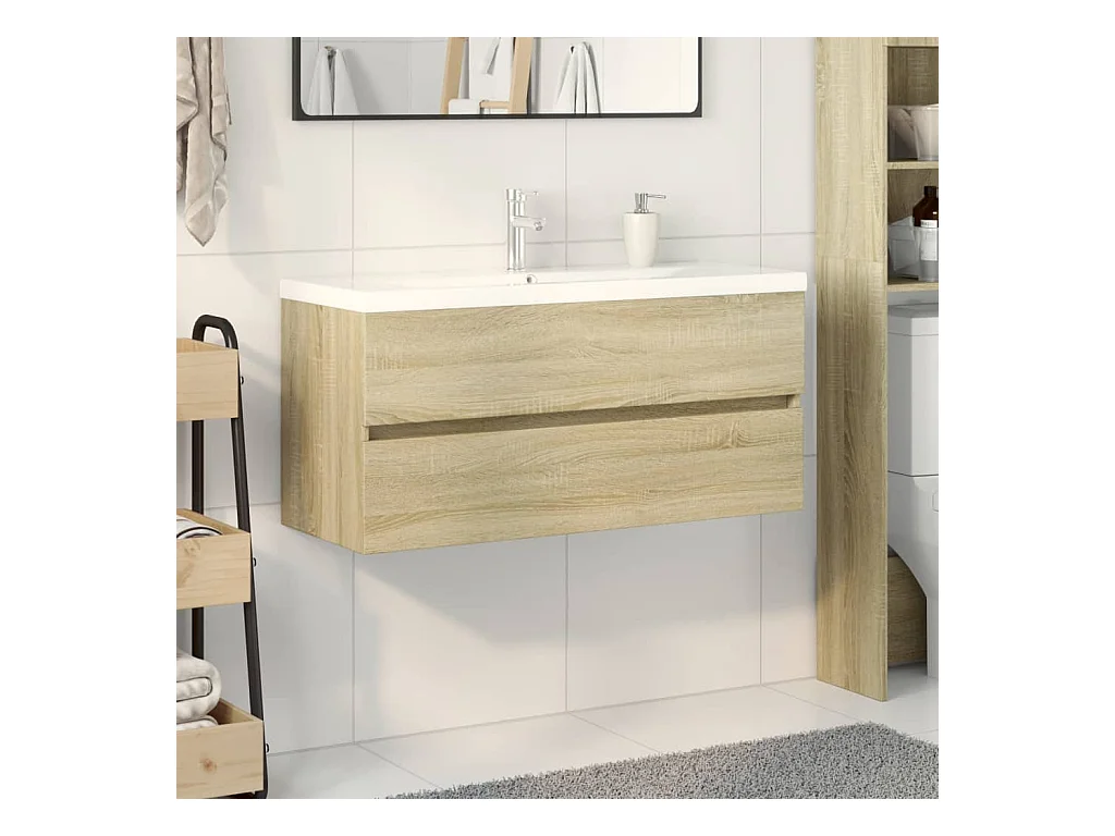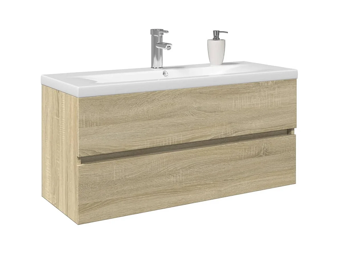 Set di mobili da bagno da 2 pezzi in ceramica e legno ingegnerizzato
