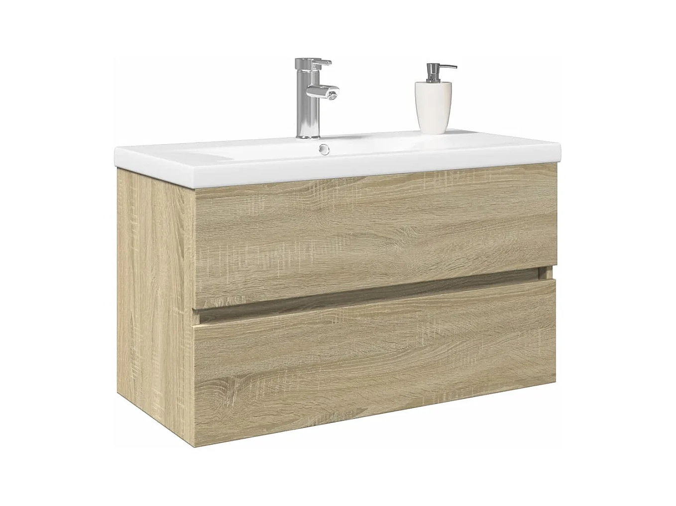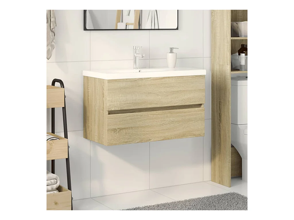 Set di mobili da bagno da 2 pezzi in ceramica e legno ingegnerizzato