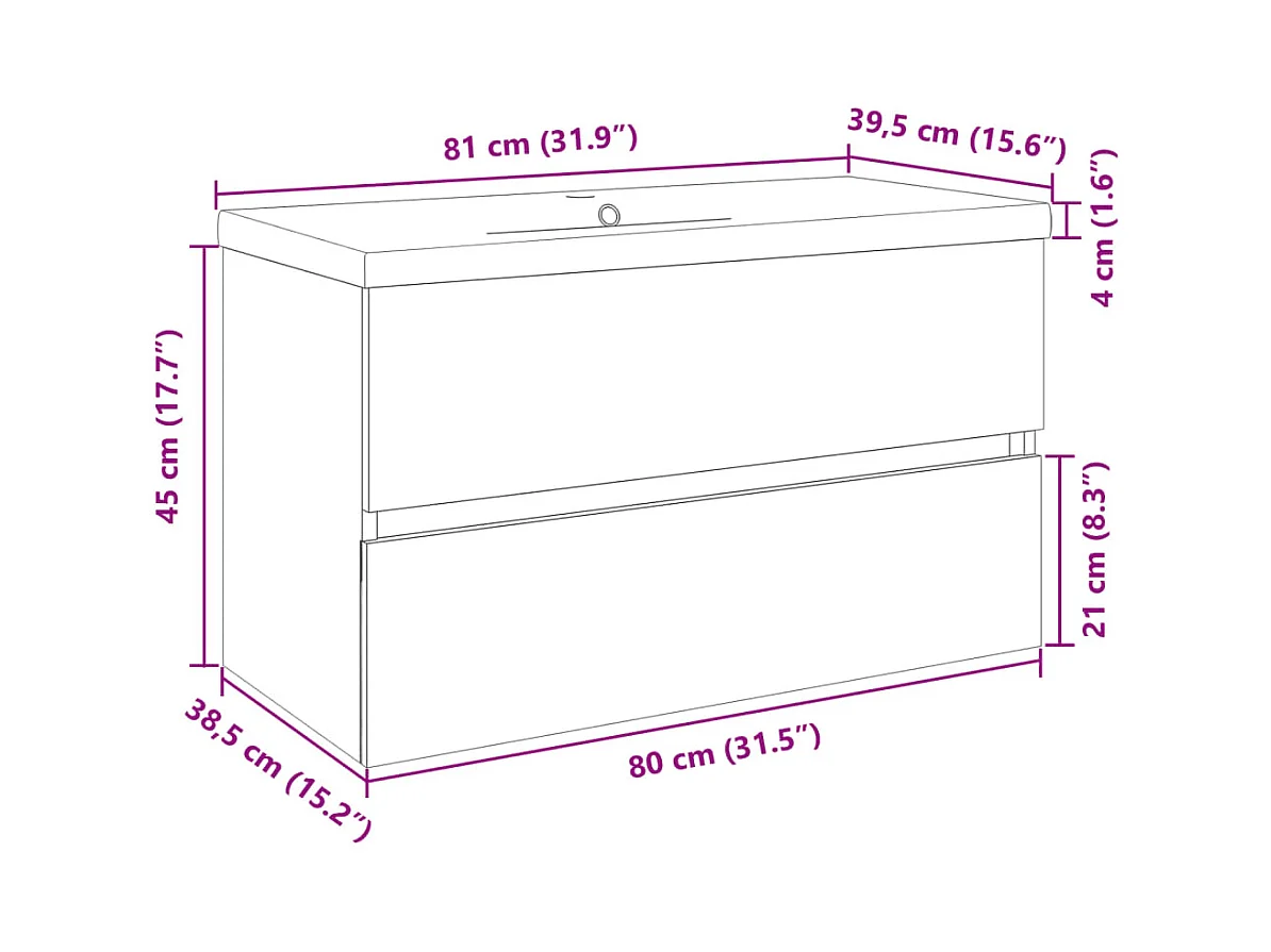 Mobile lavabo bagno rovere marrone 80x30x60 cm