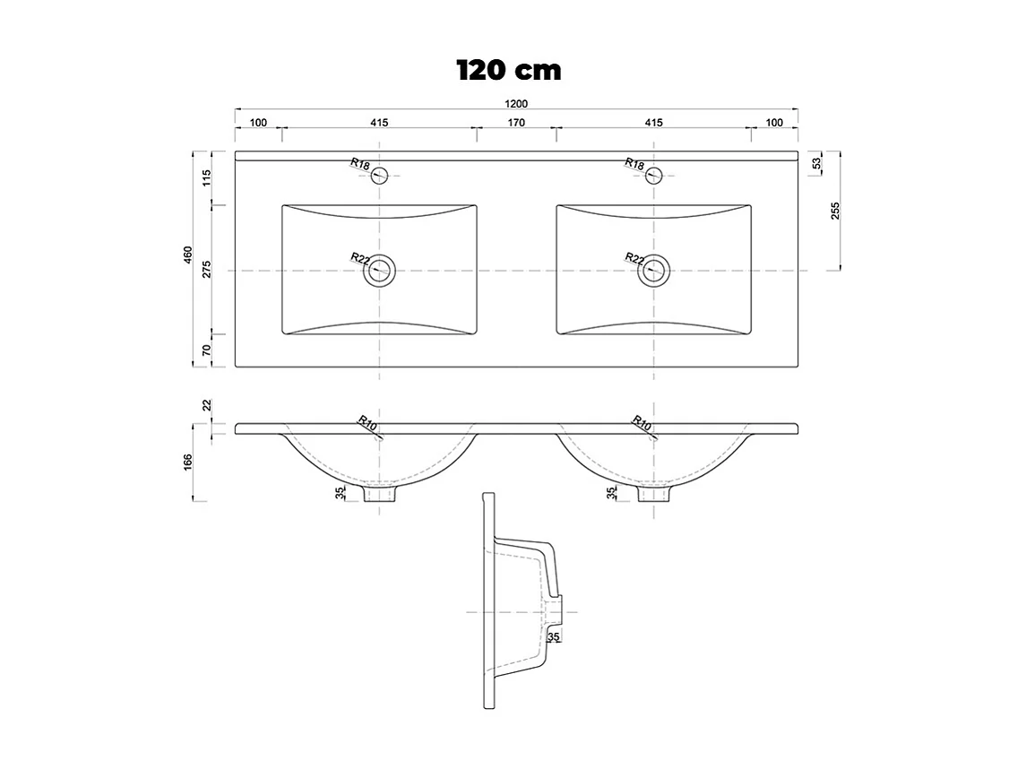 Set di mobili da bagno doppio lavabo Livia bianco 120cm