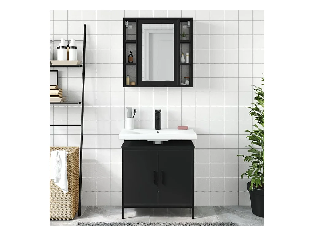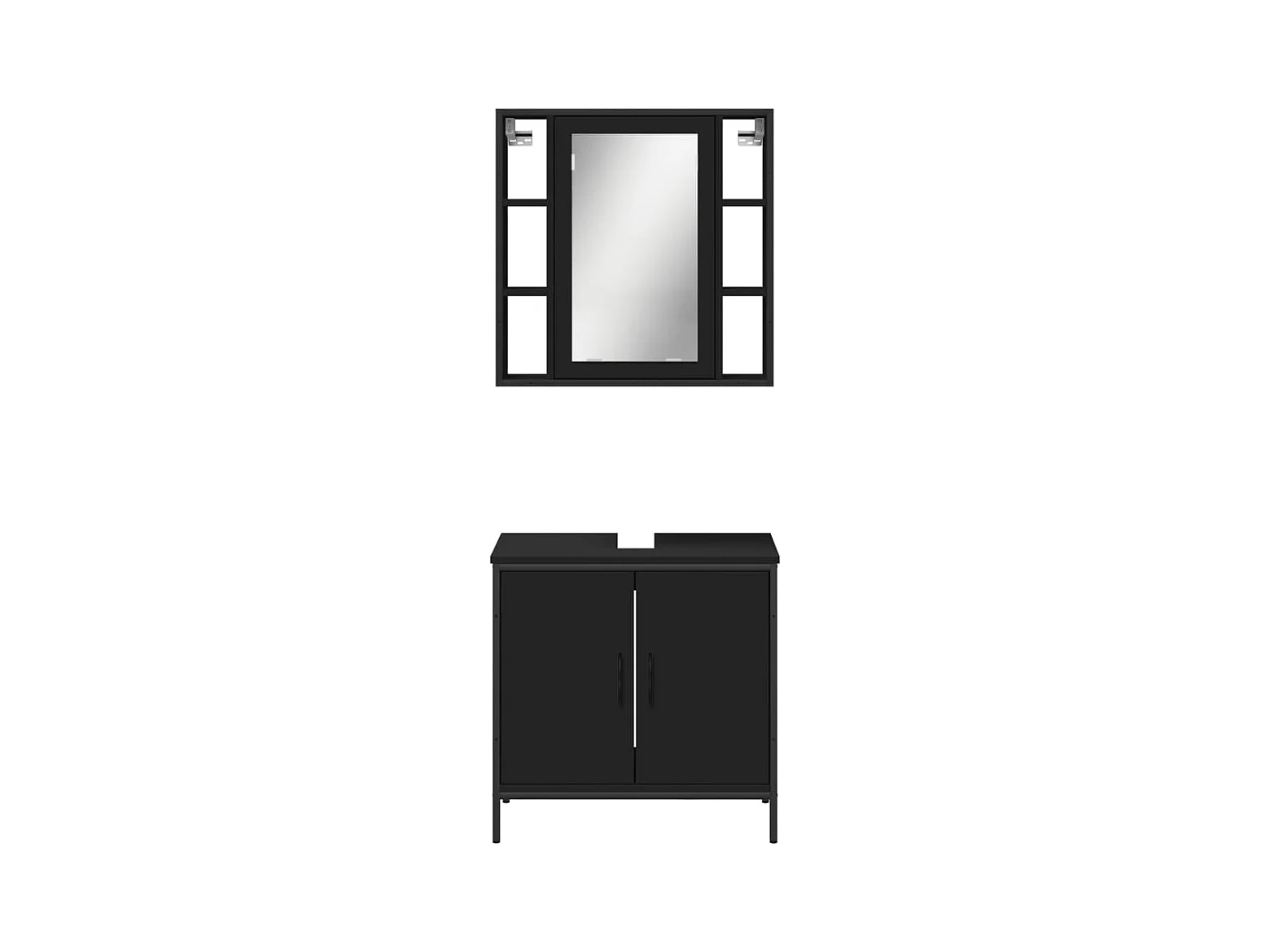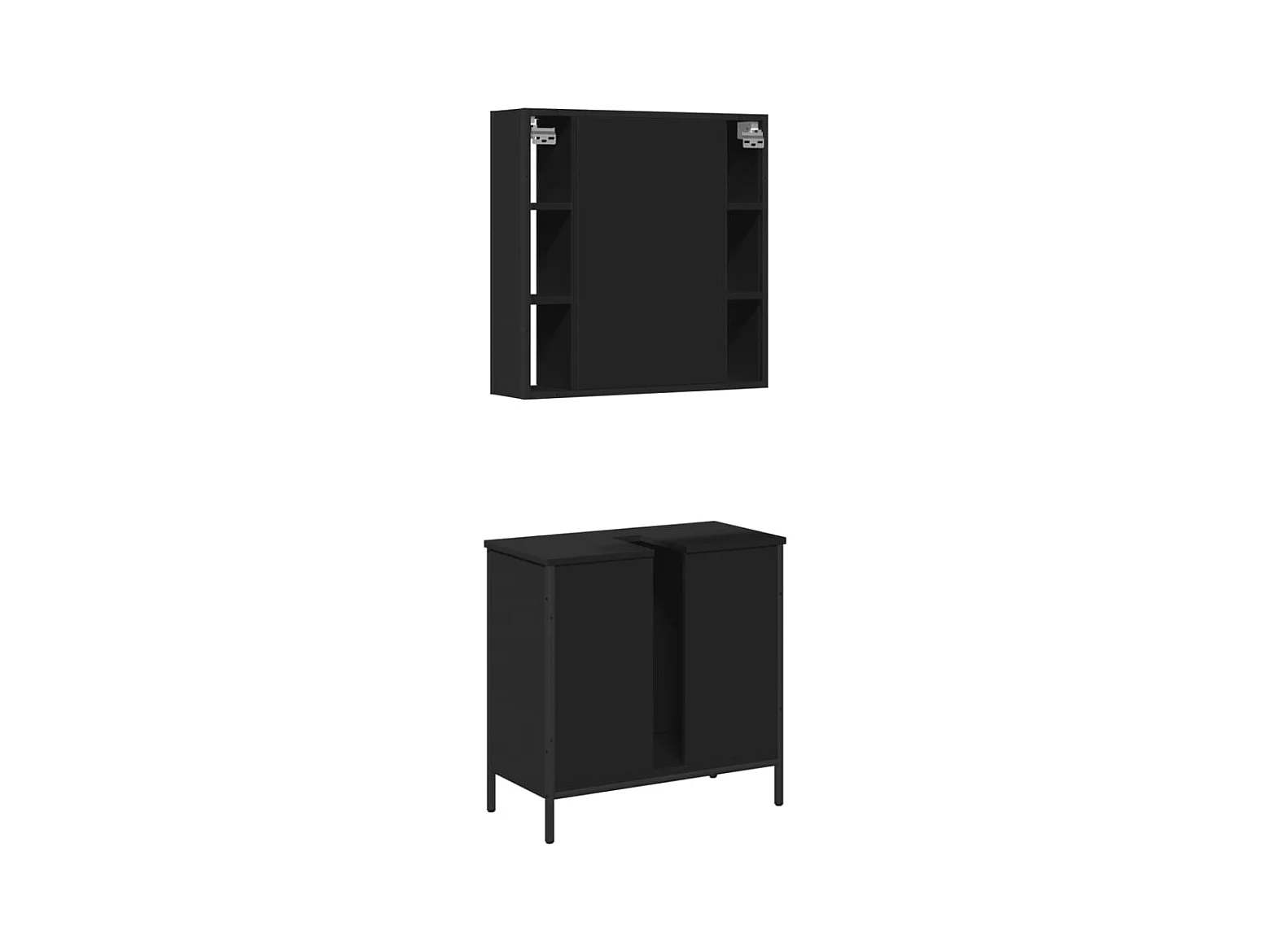 Set di mobili da bagno in legno ingegnerizzato nero, 2 pezzi