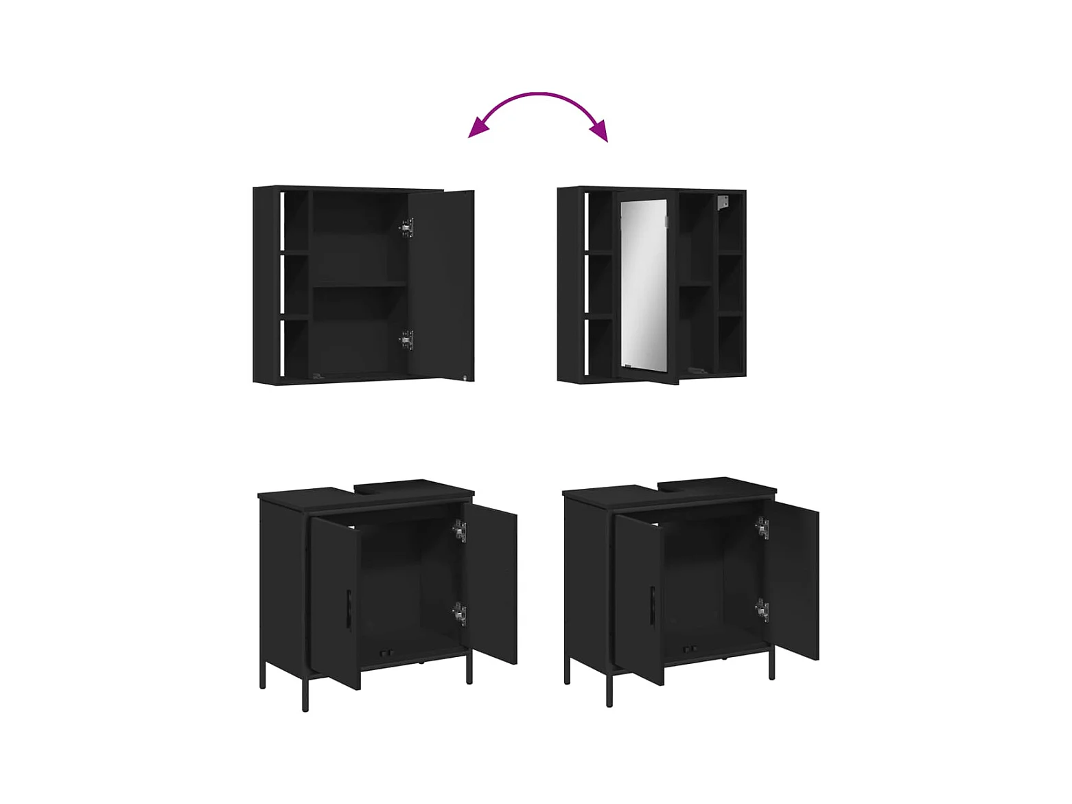 Set di mobili da bagno in legno ingegnerizzato nero, 3 pezzi