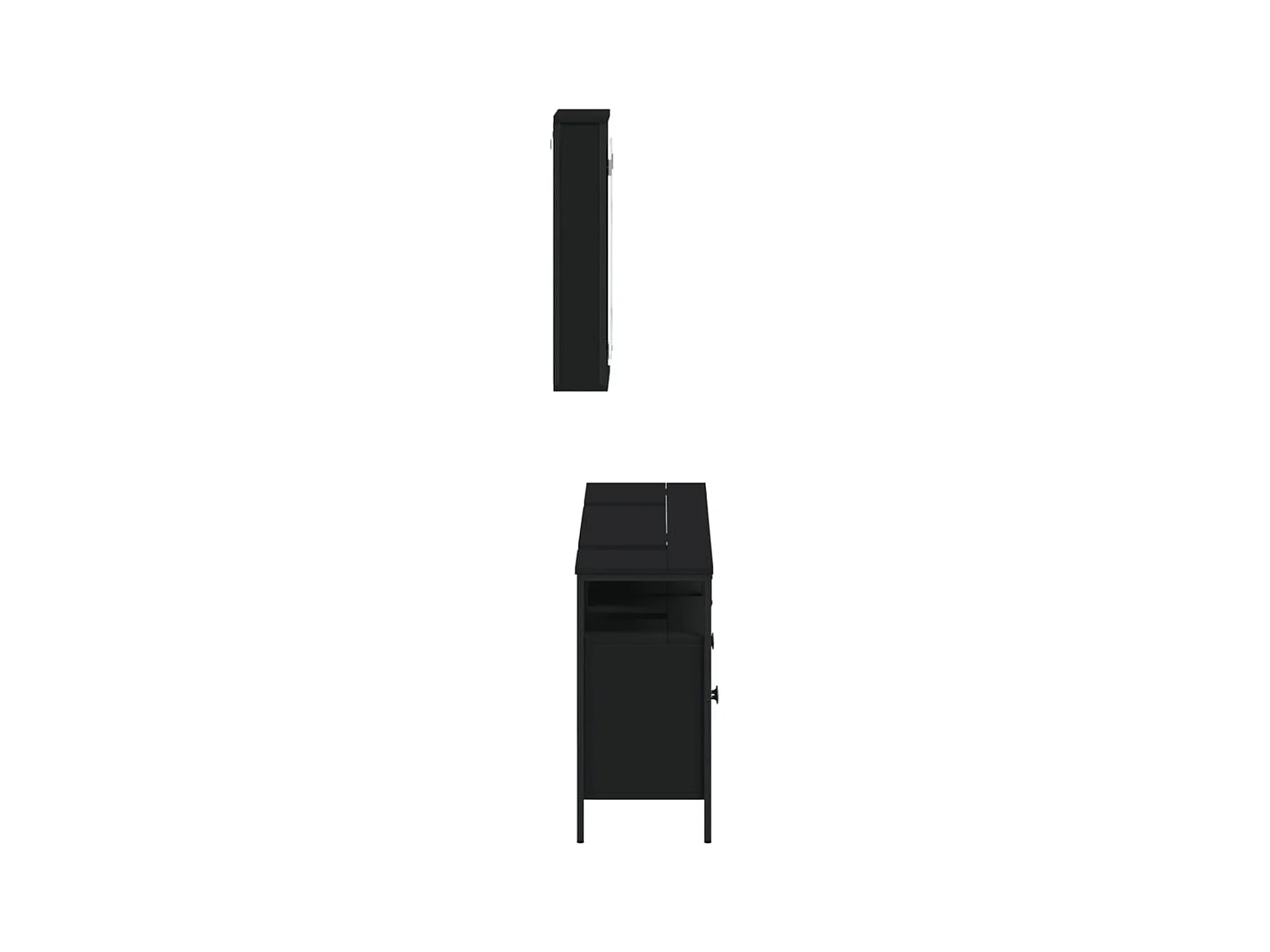 Set di mobili da bagno in legno ingegnerizzato nero, 2 pezzi
