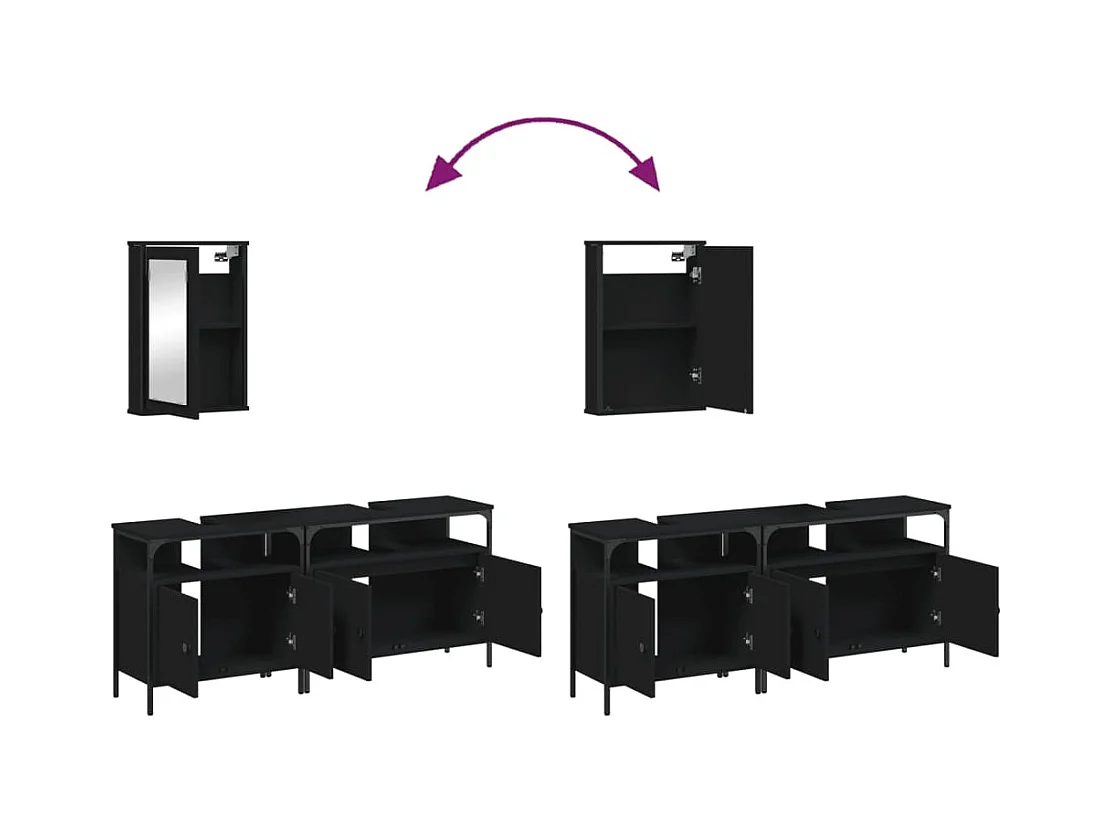 Set di mobili da bagno in legno ingegnerizzato nero da 4 pezzi