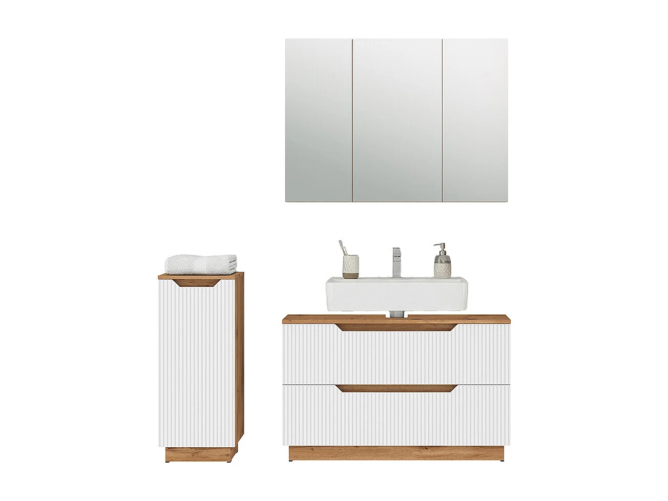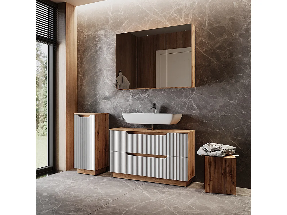 Set di mobili da bagno rovere/bianco a strisce 99.4x32x62.5 lotta
