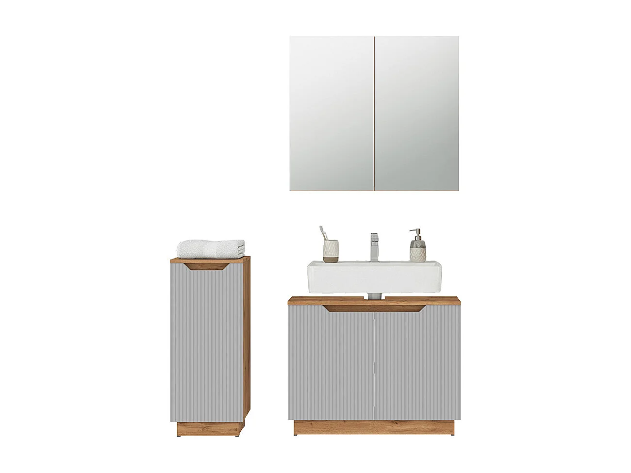 Set di mobili da bagno rovere/grigio a righe 79.6x32x62.1 lotta