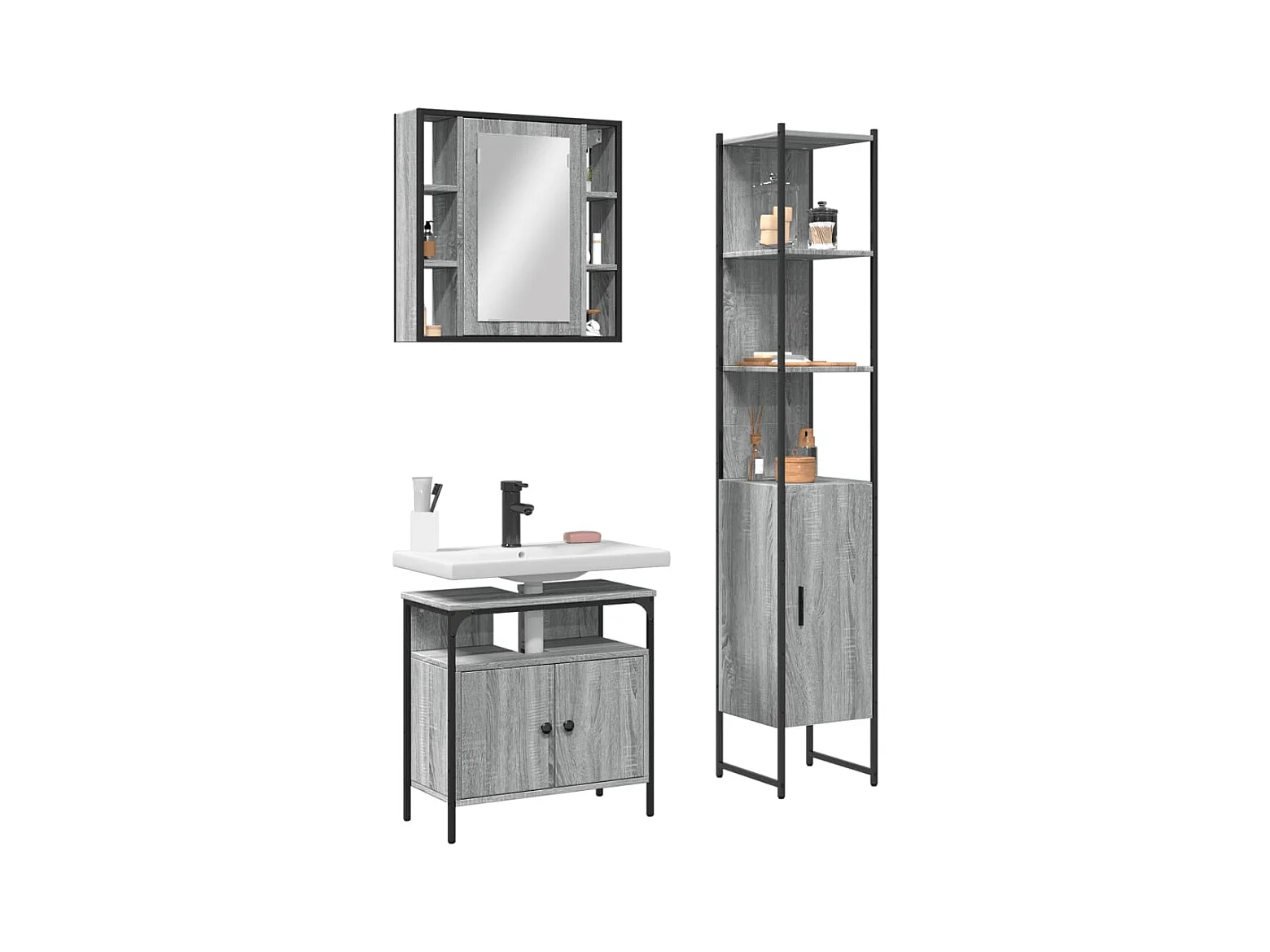 Set di mobili da bagno Sonoma Grey da 3 pezzi
