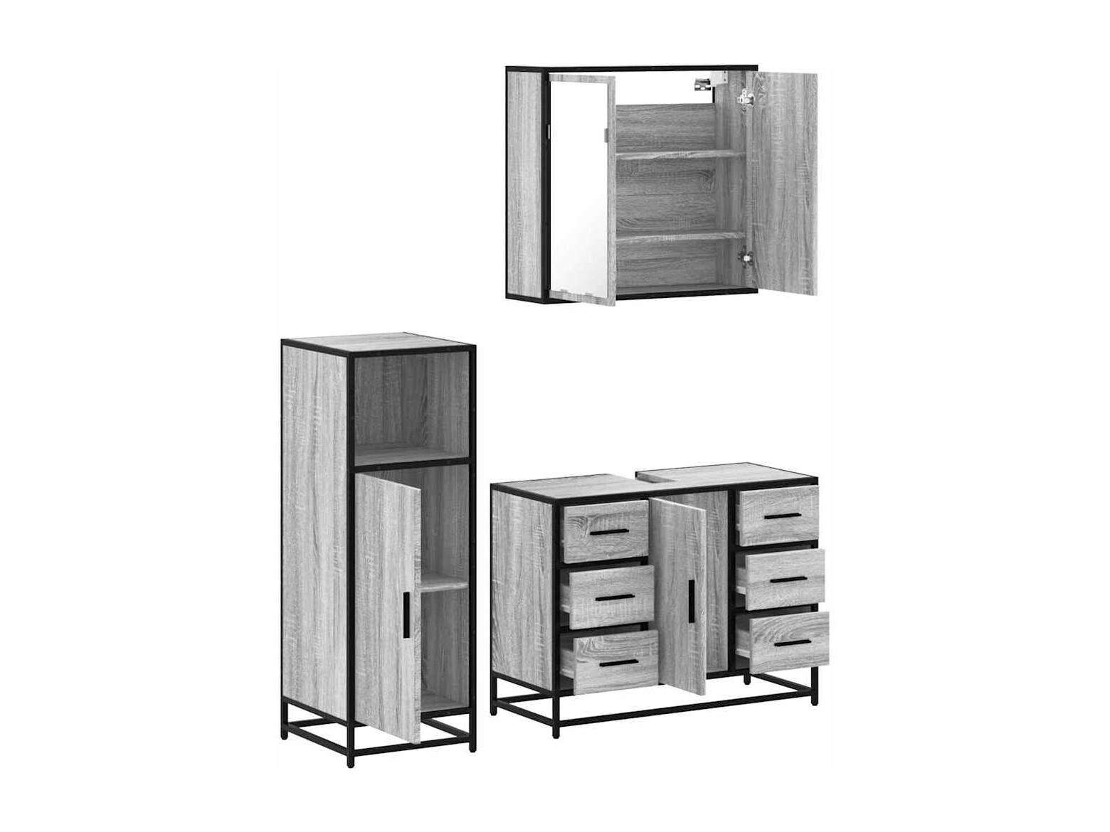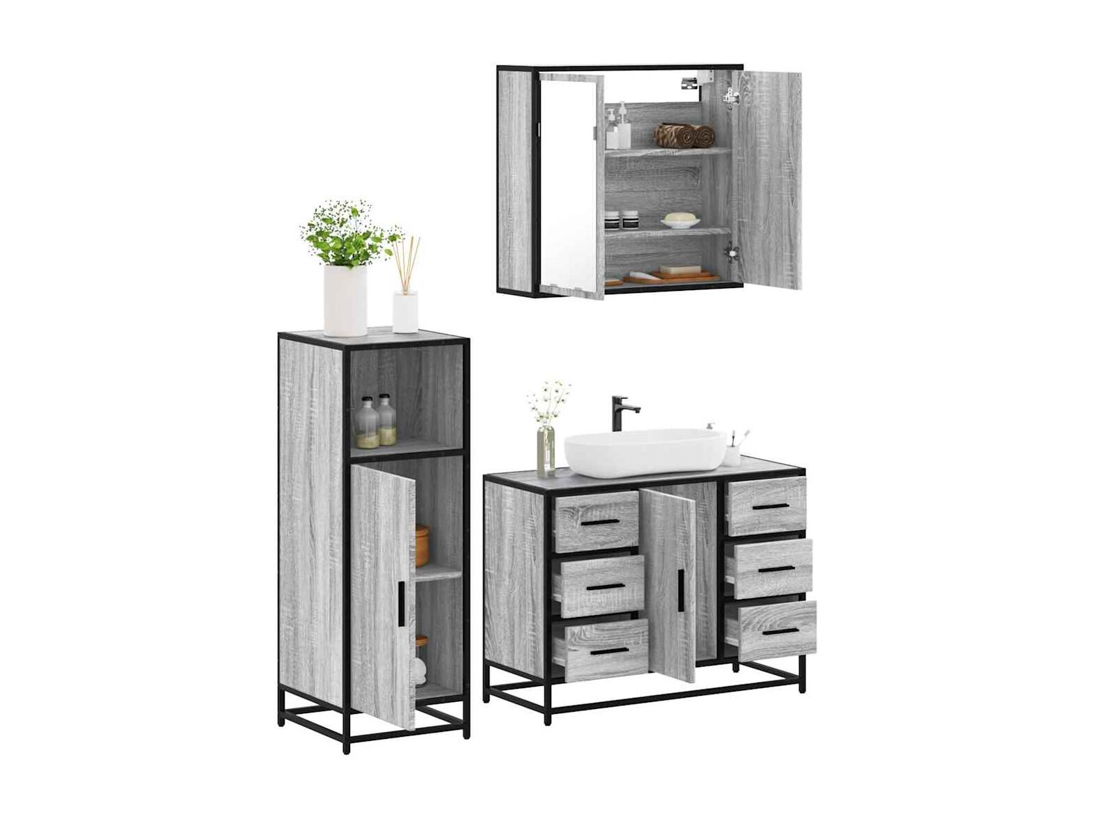 Set di mobili da bagno 4 pezzi grigio Sonoma