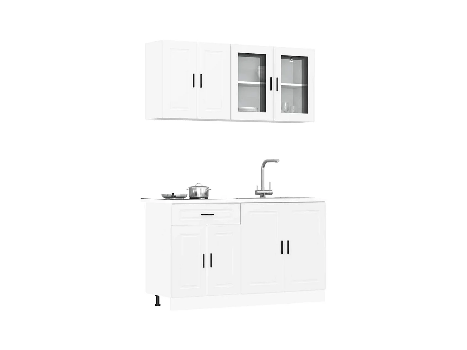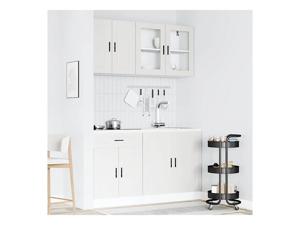 Set di mobili da cucina da 4 pezzi, in legno ingegnerizzato bianco