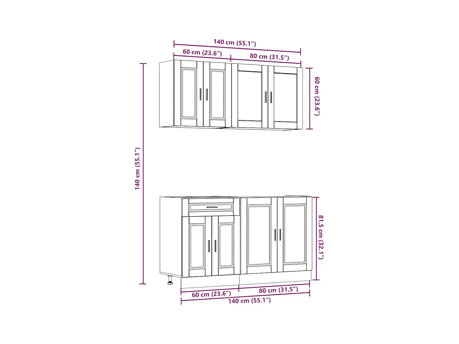 Set di mobili da cucina in legno ingegnerizzato da 4 pezzi