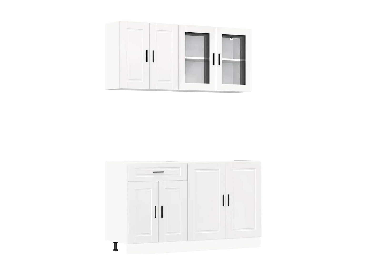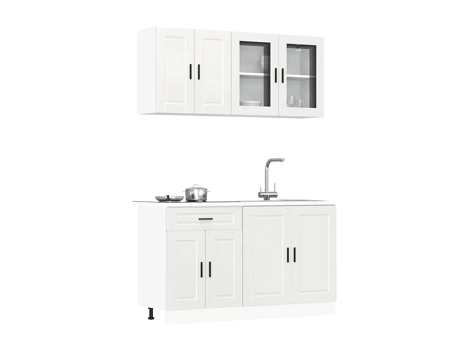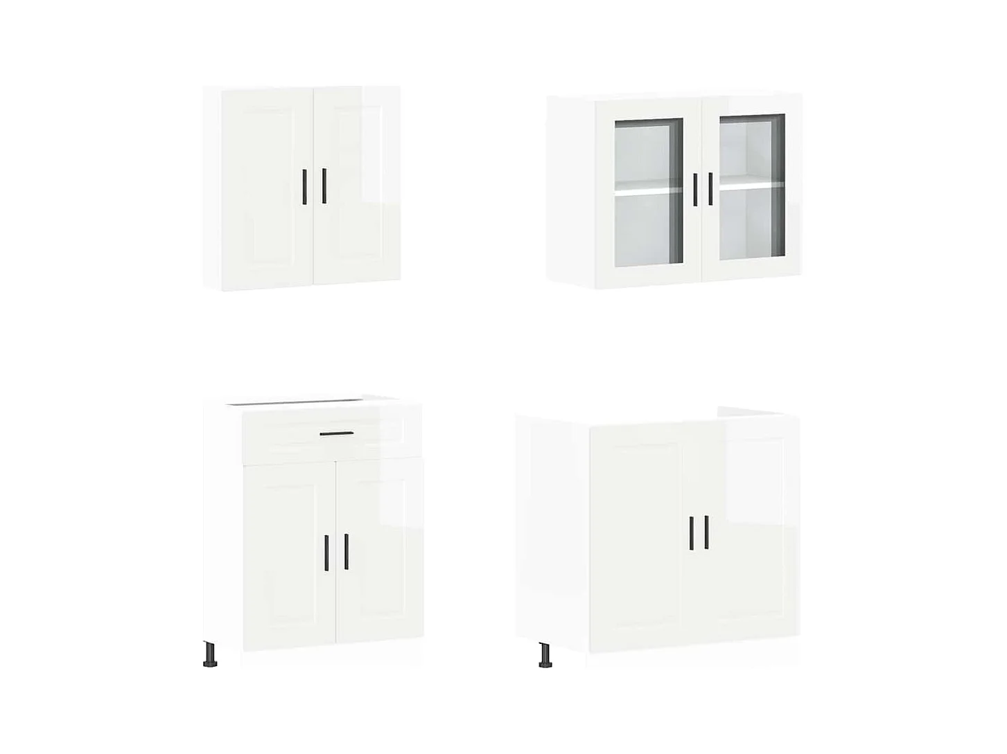 Set di mobili da cucina da 4 pezzi, in legno ingegnerizzato bianco
