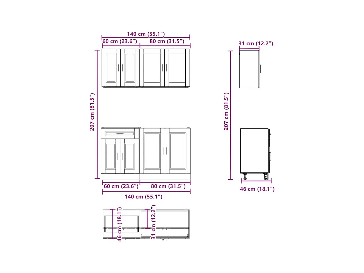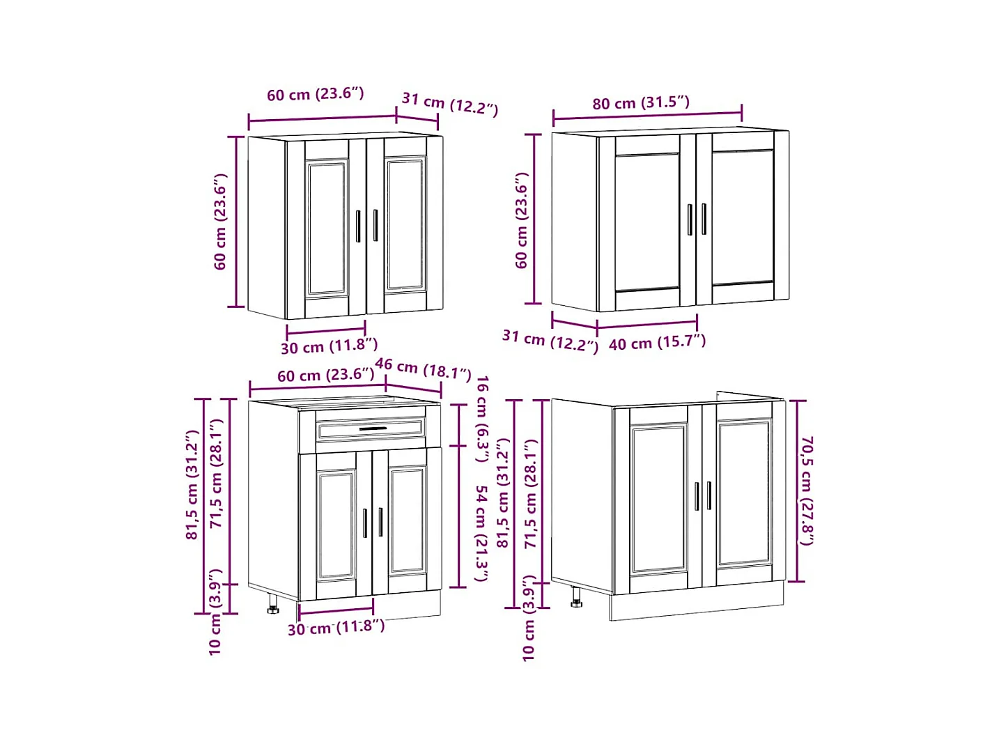 Set di mobili da cucina in legno ingegnerizzato da 4 pezzi