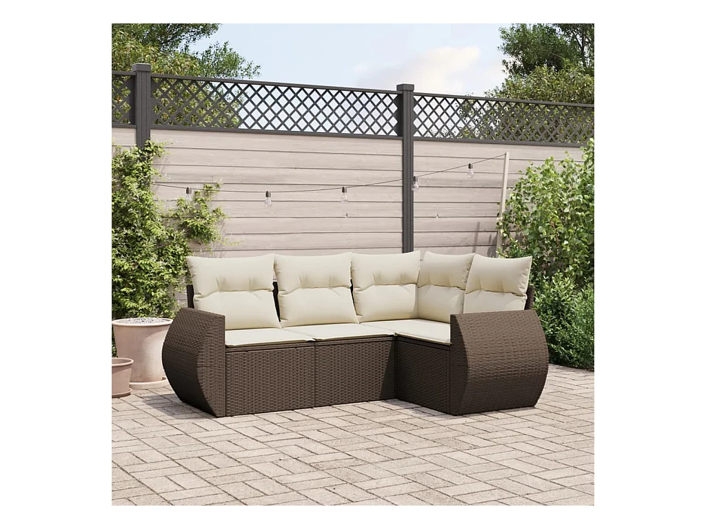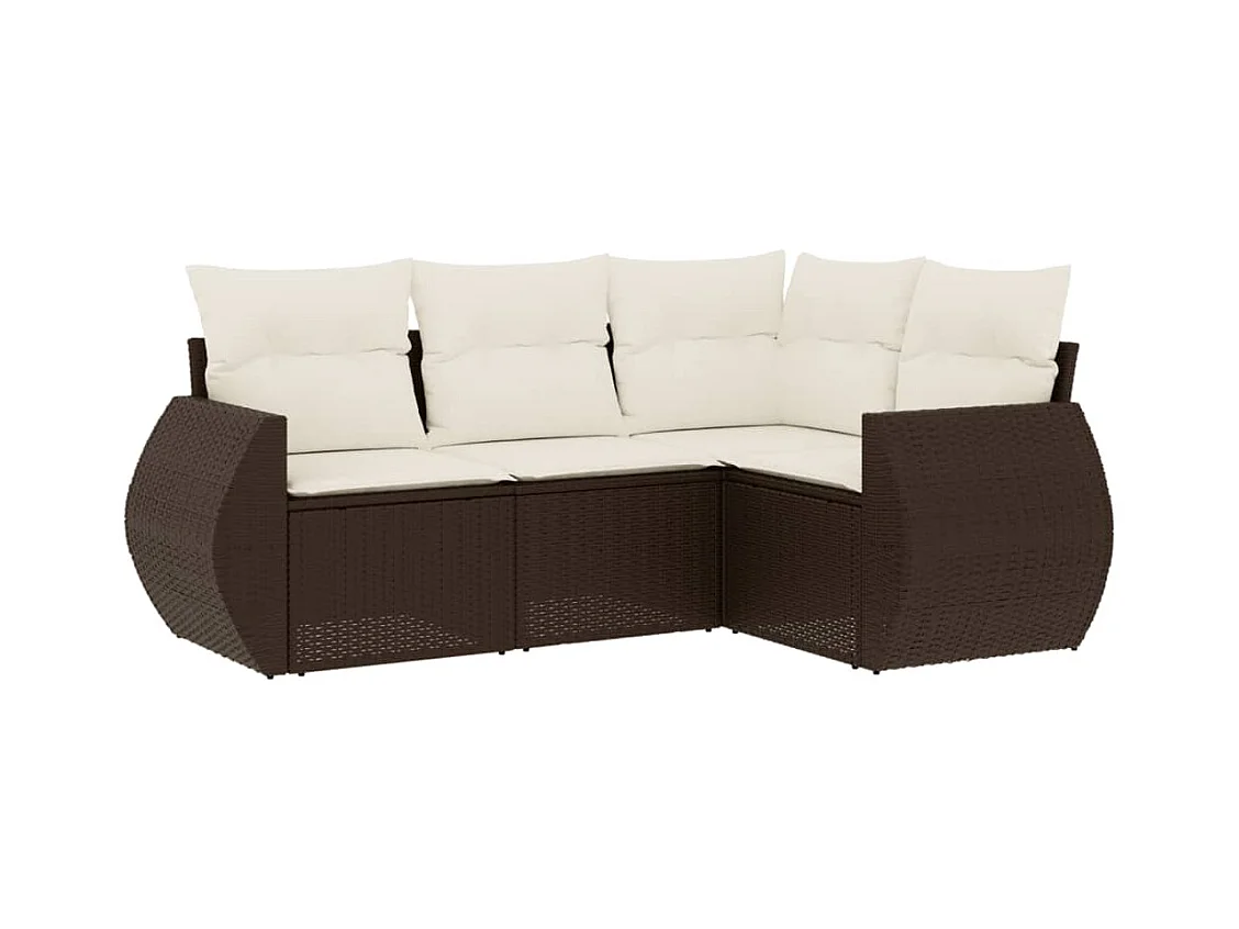 Set di mobili da giardino 4 pezzi con cuscini marroni in resina intrecciata