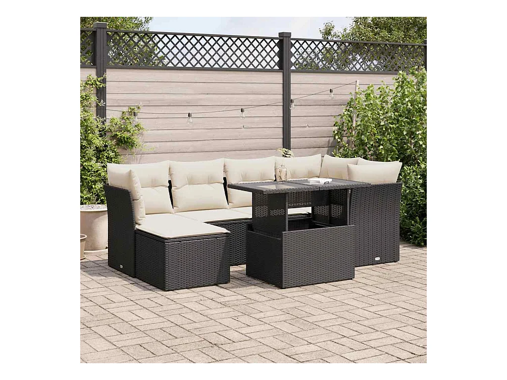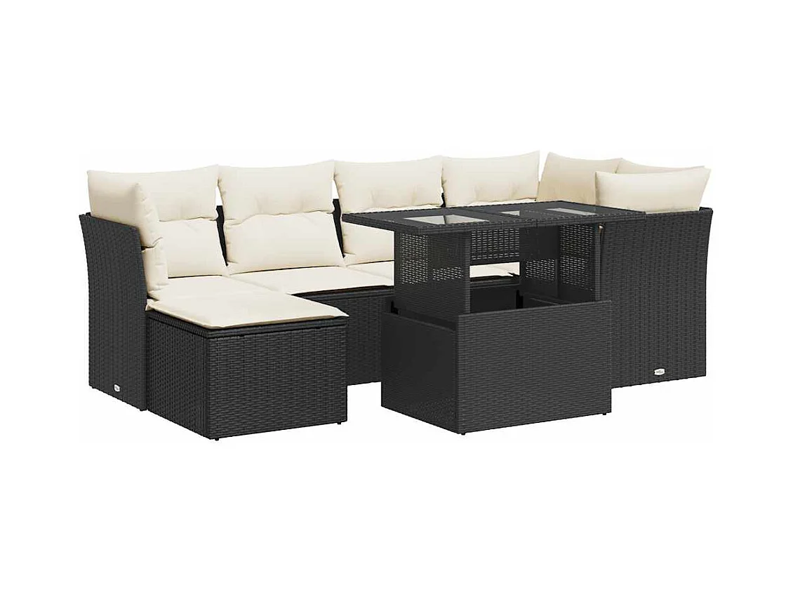 Set di mobili da giardino 7 pezzi con cuscini neri in resina intrecciata