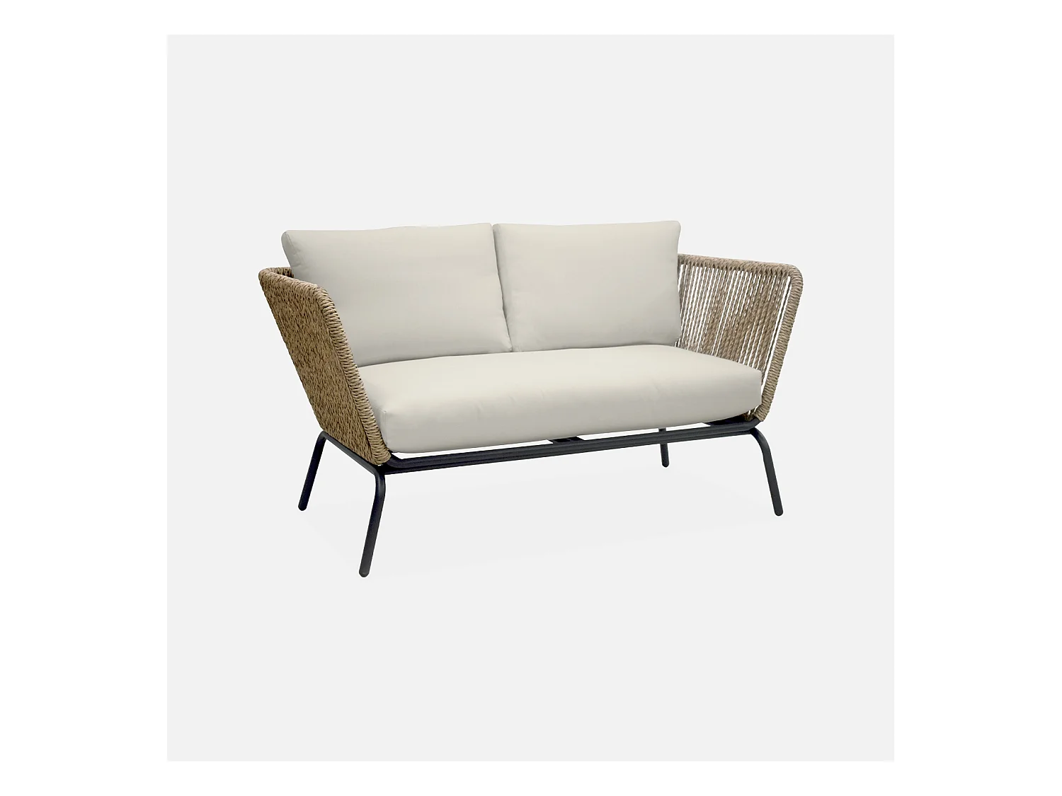 Salotto da giardino in resina intrecciata effetto rattan, 4 posti,