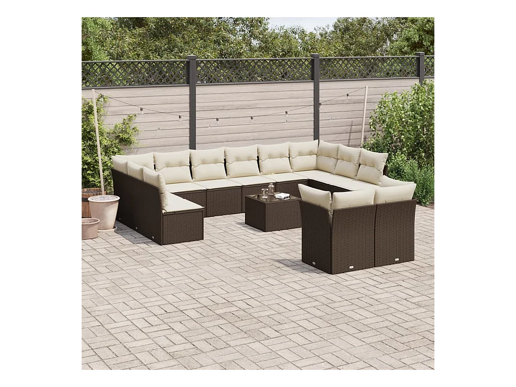 Set di mobili da giardino con cuscini 13 pezzi in resina intrecciata marrone