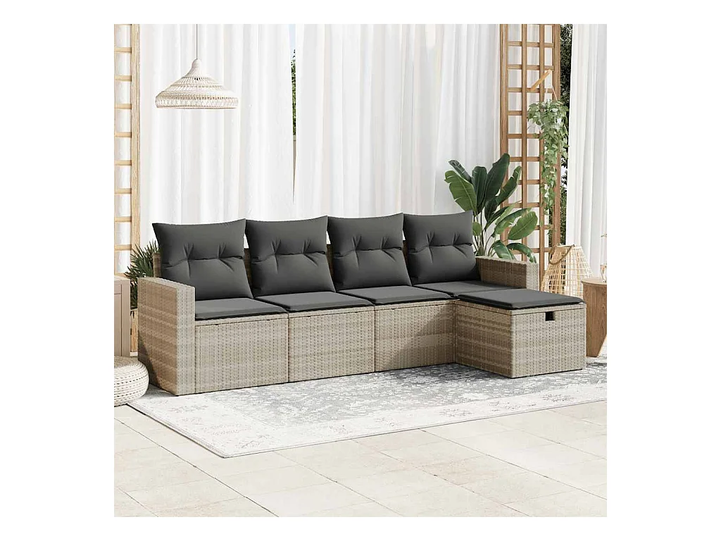 Set di mobili da giardino da 5 pezzi con cuscini grigio chiaro in resina intrecciata