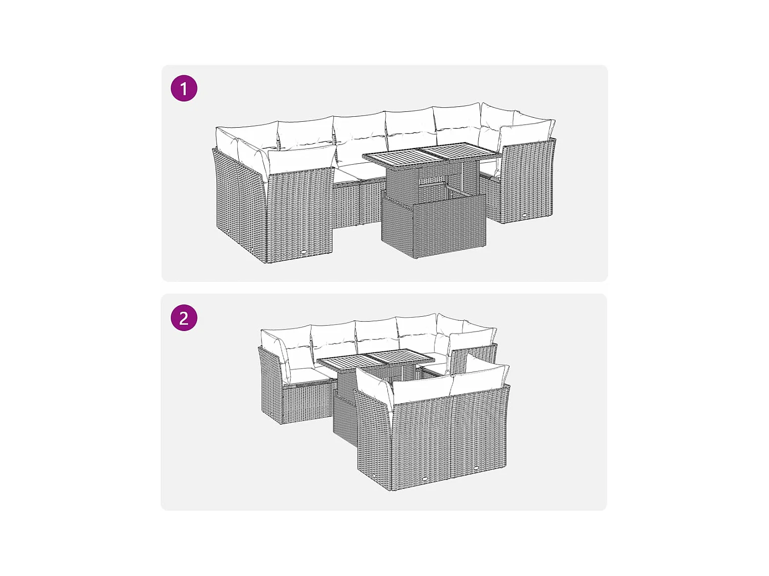 Set di mobili da giardino da 9 pezzi con cuscini grigi in resina intrecciata