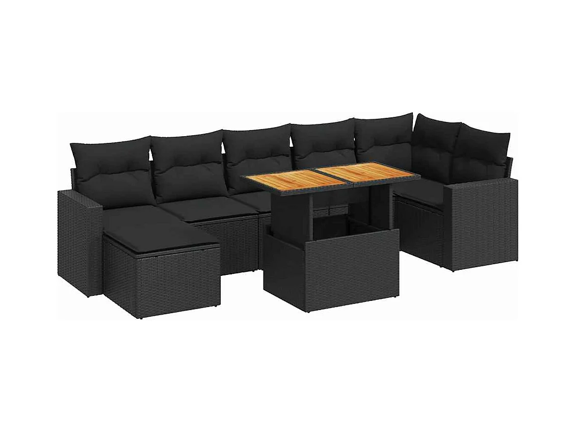 Set di mobili da giardino da 8 pezzi con cuscini neri in resina intrecciata