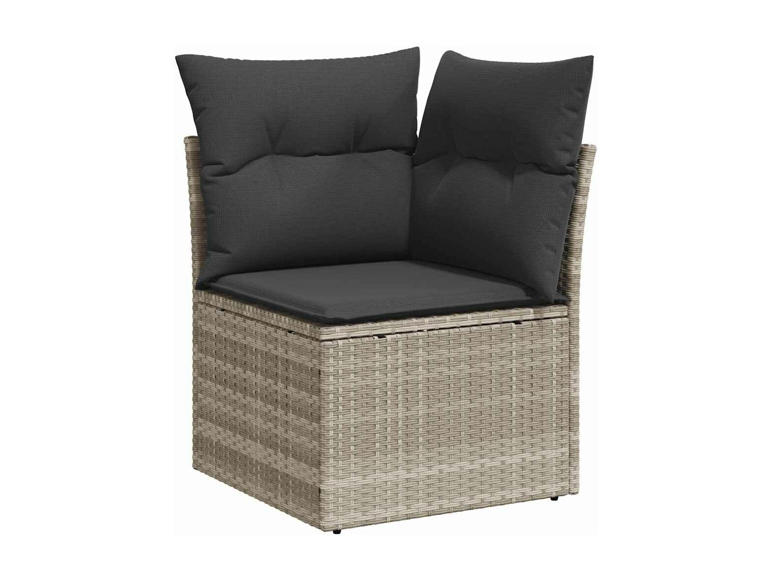 Set di mobili da giardino da 6 pezzi con cuscini grigi in resina intrecciata