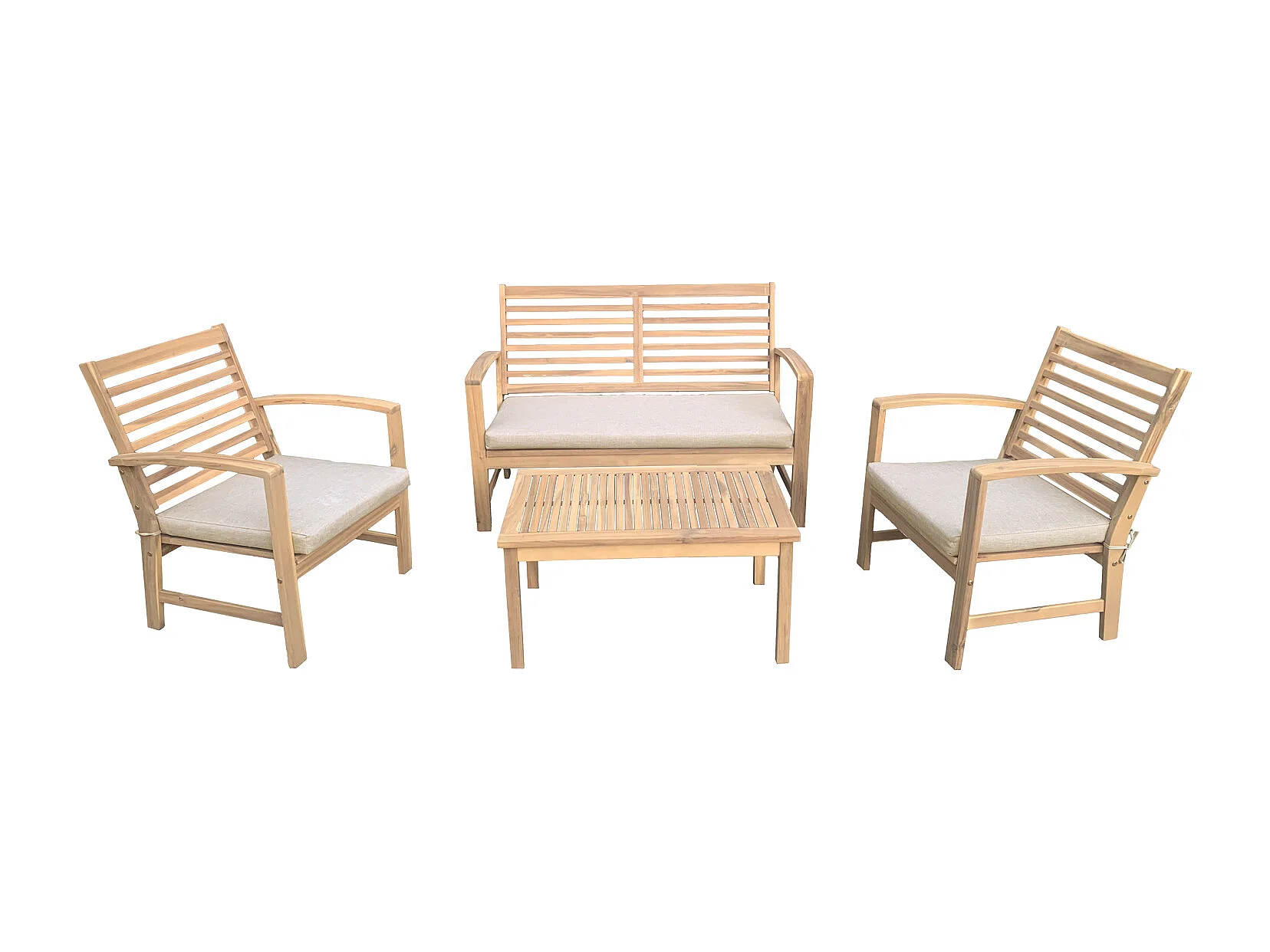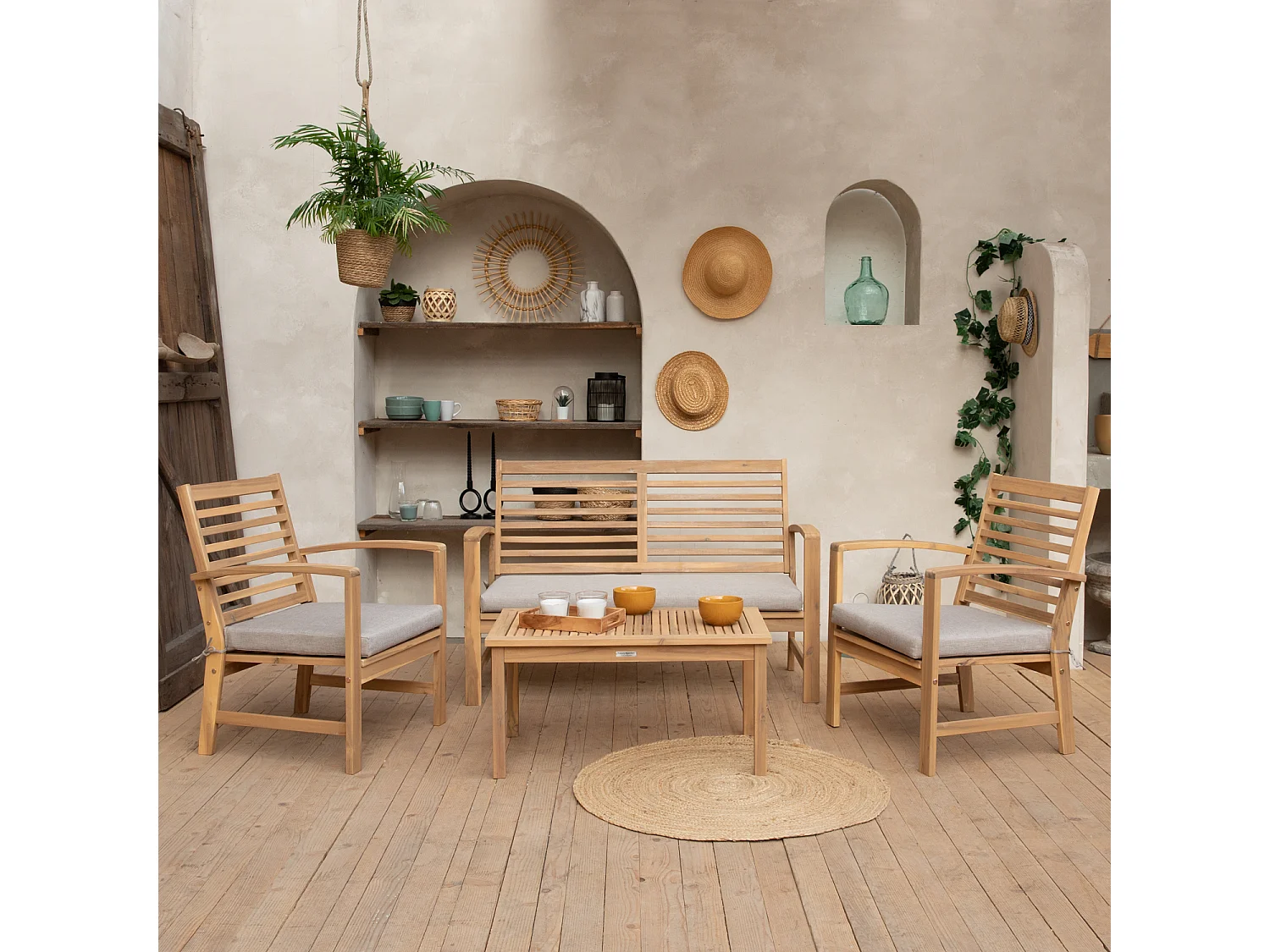 Set di mobili da giardino in acacia GILI 4 posti - cuscini sabbia