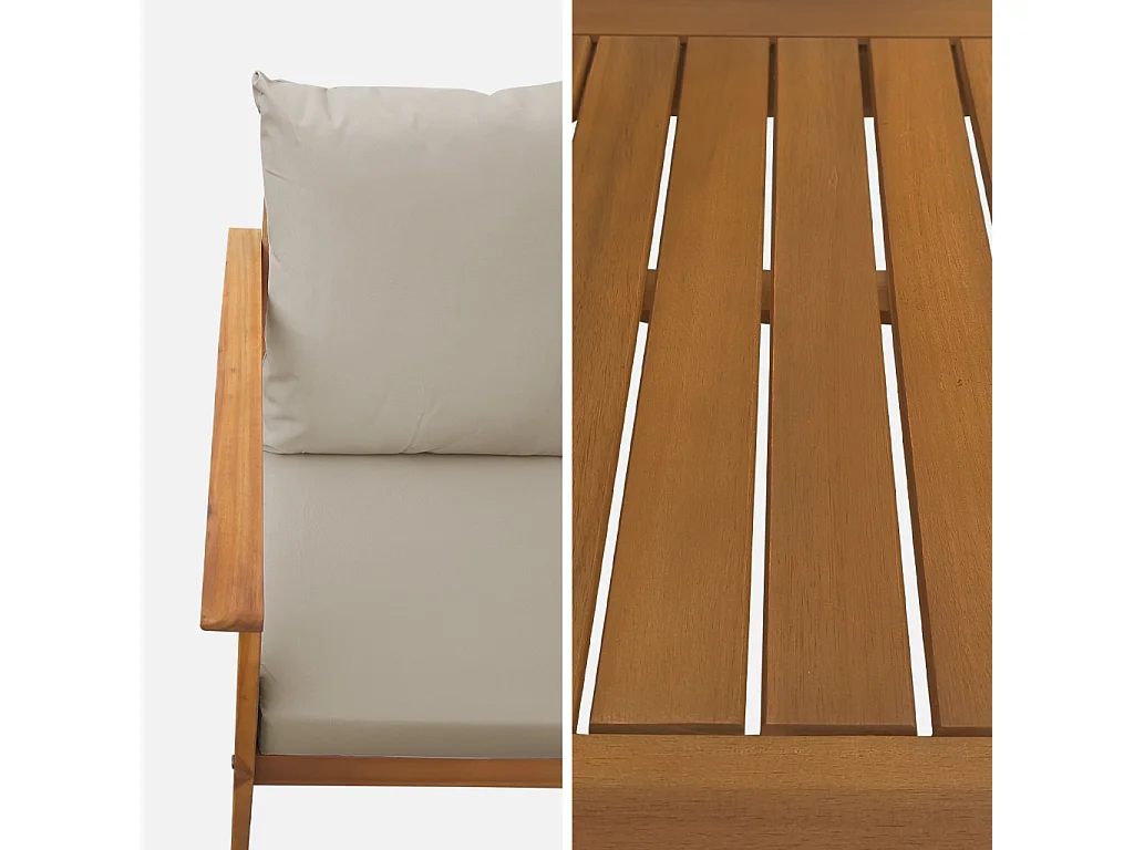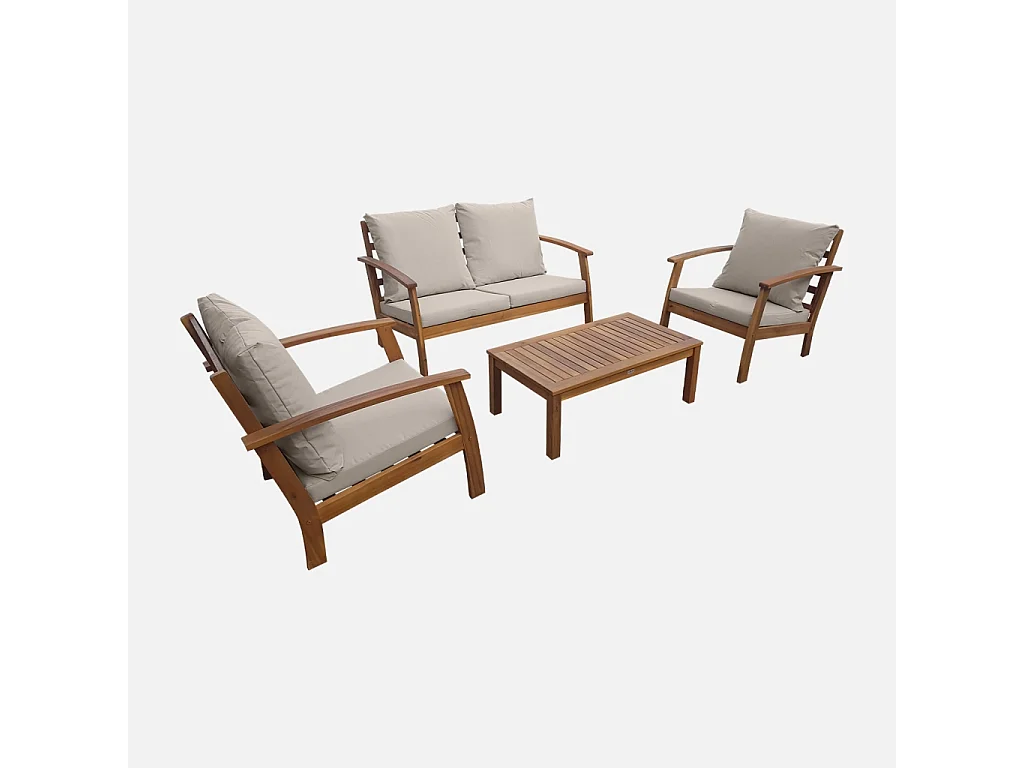 Salotto da giardino in legno, 4 posti, marrone naturale