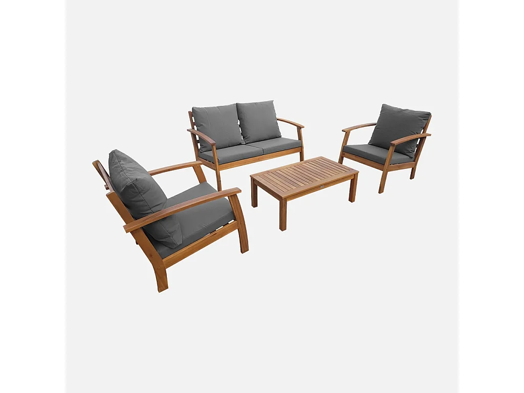 Salotto da giardino in legno, 4 posti, marrone naturale