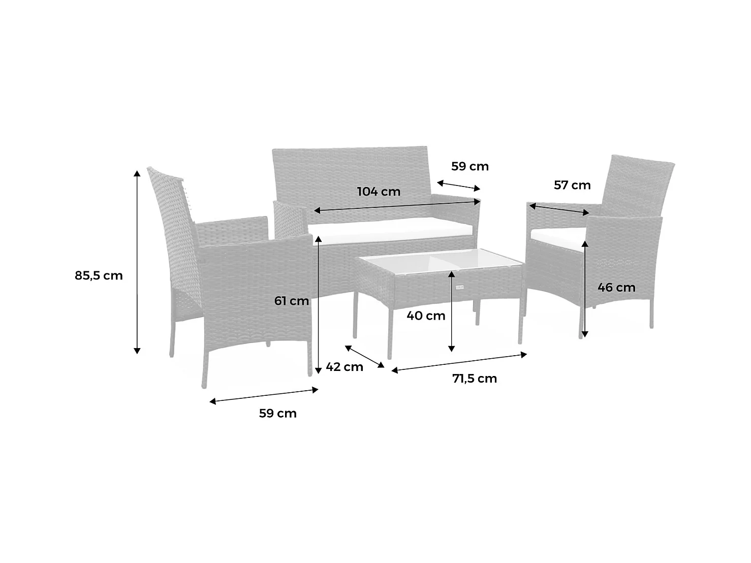 Salotto da giardino 4 posti resina intrecciata castagna/bianco SILANG